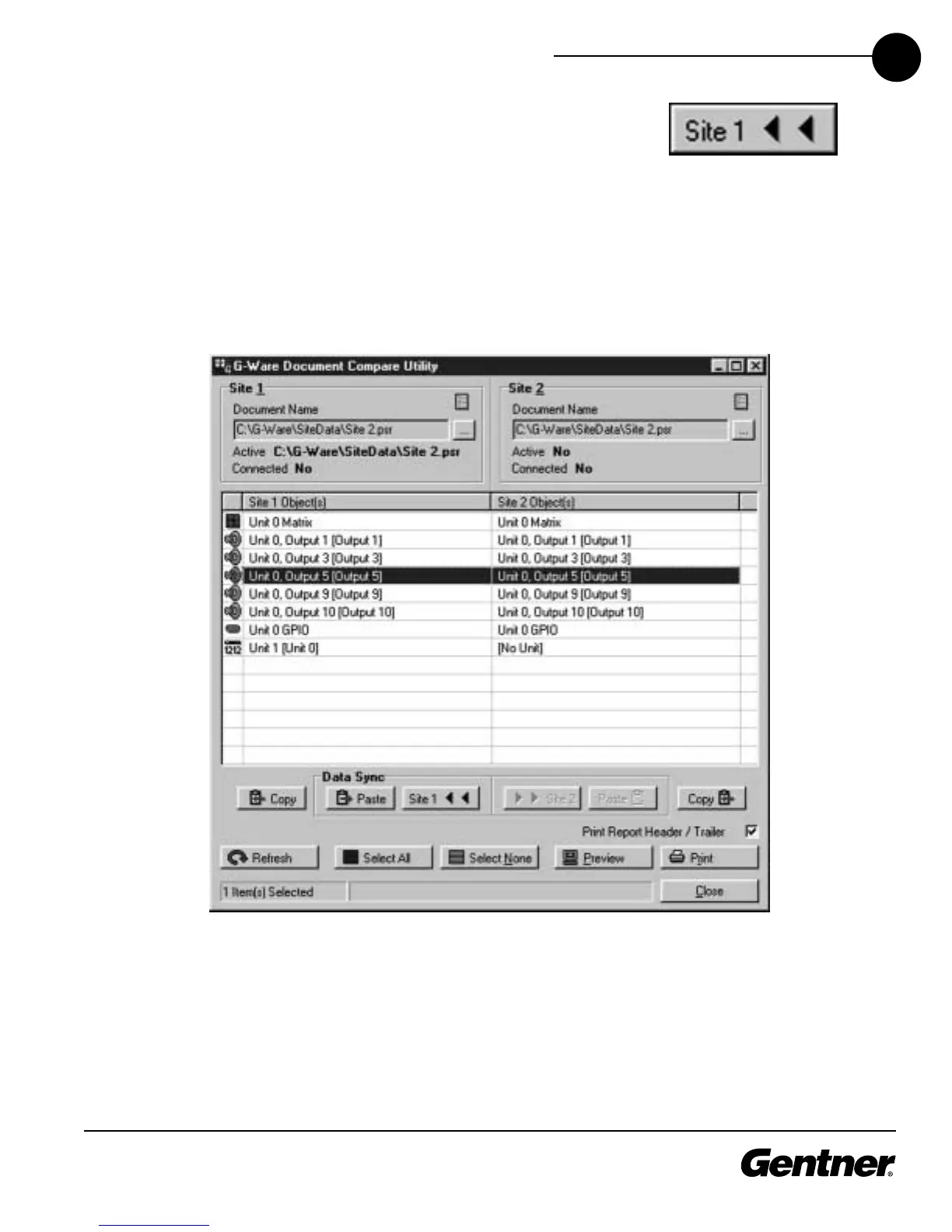 the Site 1 panel to the corresponding line in the Site 1 panel. The Copy