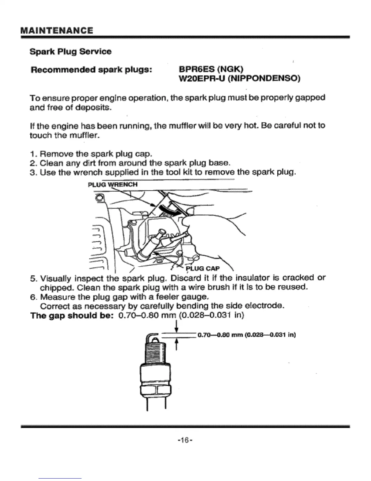 To ensure proper engine oper n° the _a,_ p_u@must be proper_ gapped