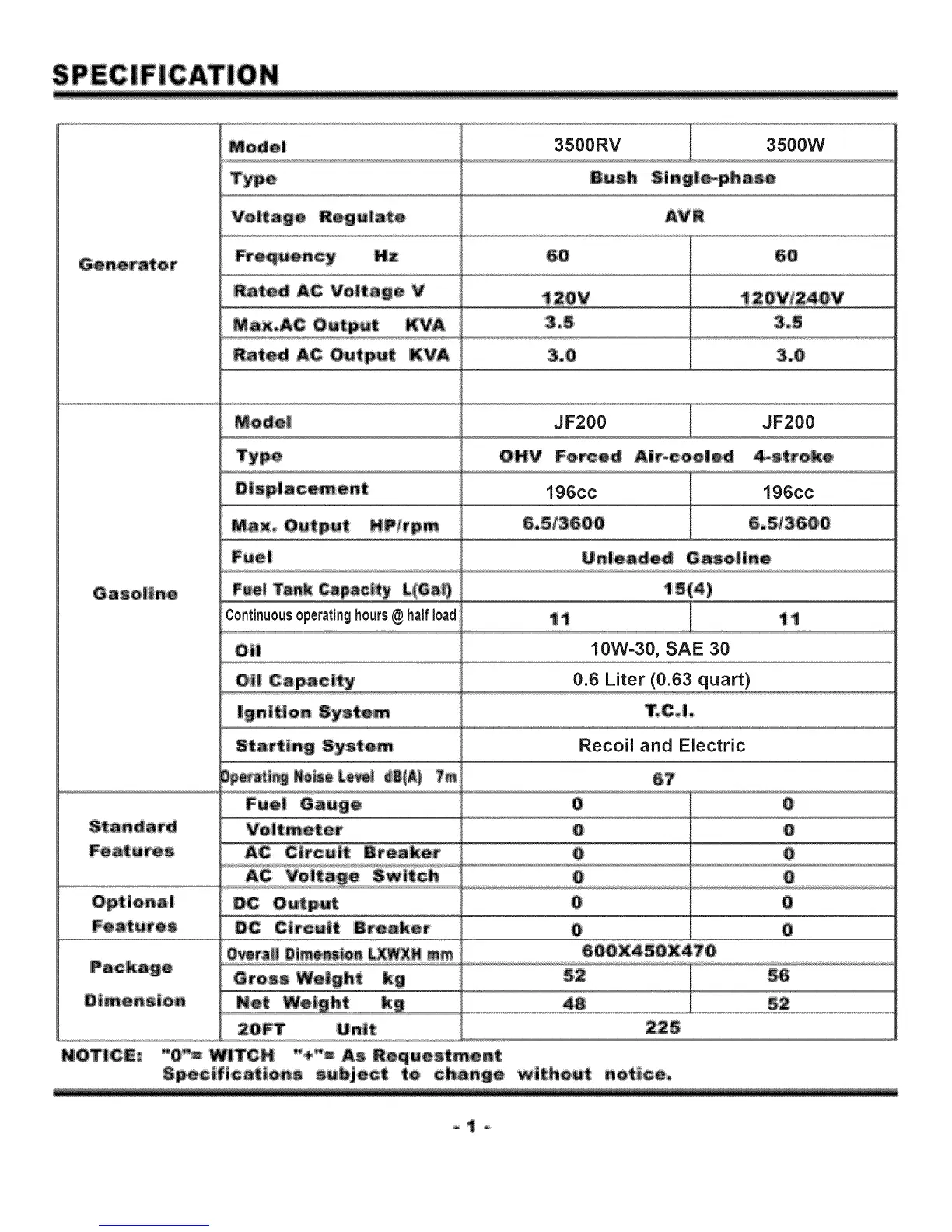 GENTRON 3500W - Technical Specifications; Generator Electrical Details; Engine and Fuel Specifications