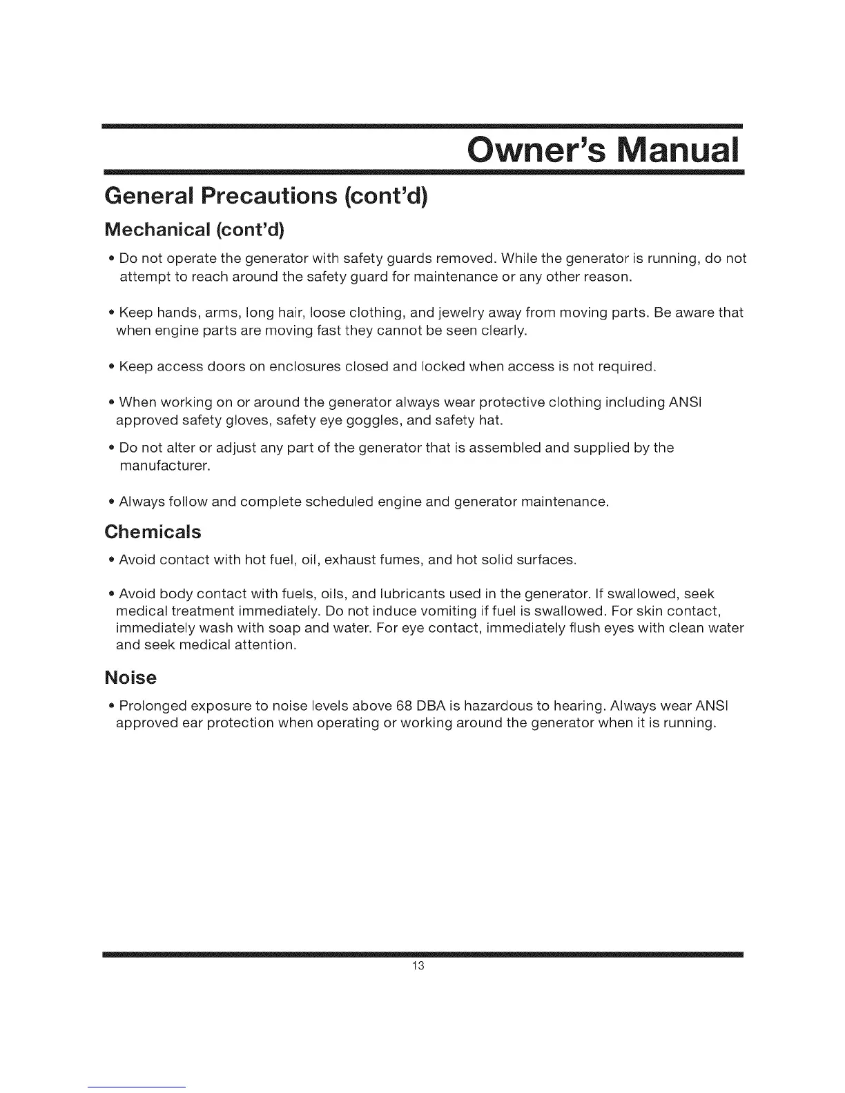 • Do not operate the generator with safety guards removed. While the generator is running, do not