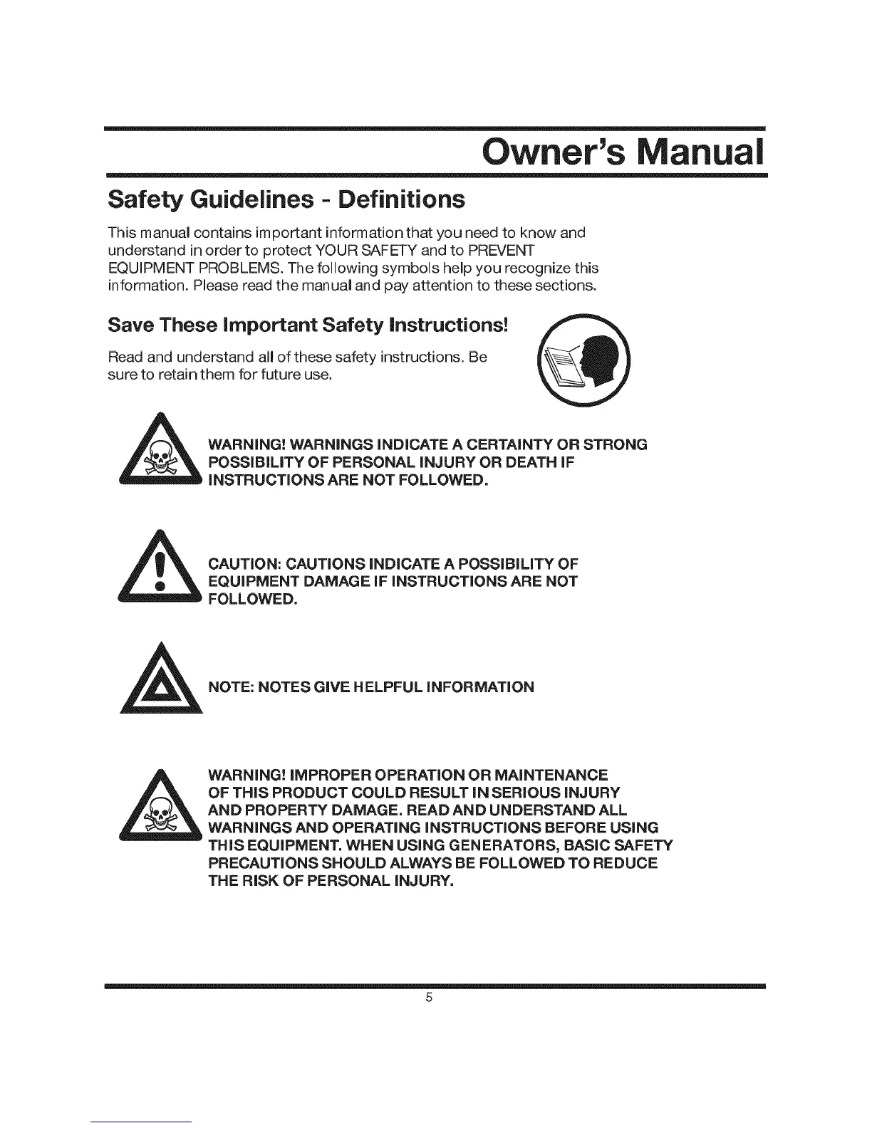 THIS EQUIPMENT. WHEN USING GENERATORS, BASIC SAFETY