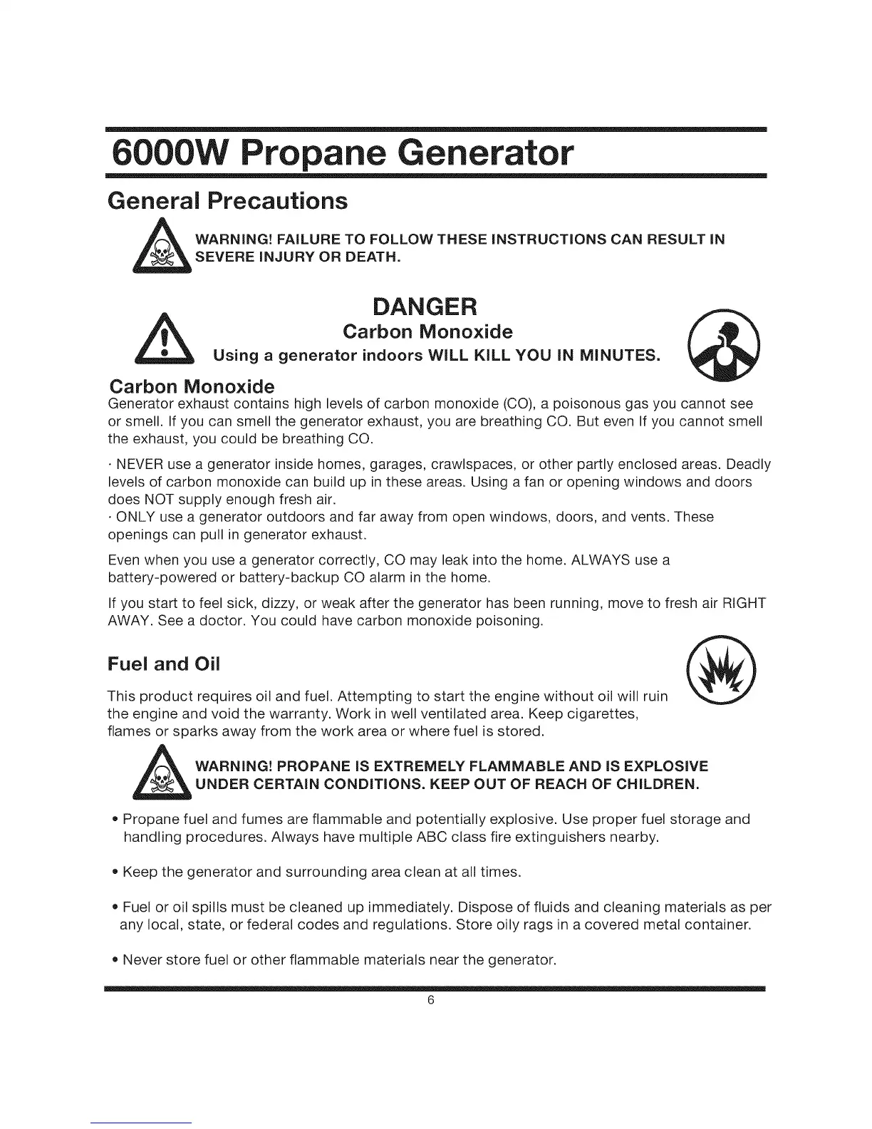 • NEVER use a generator inside homes, garages, crawlspaces, or other partly enclosed areas. Deadly