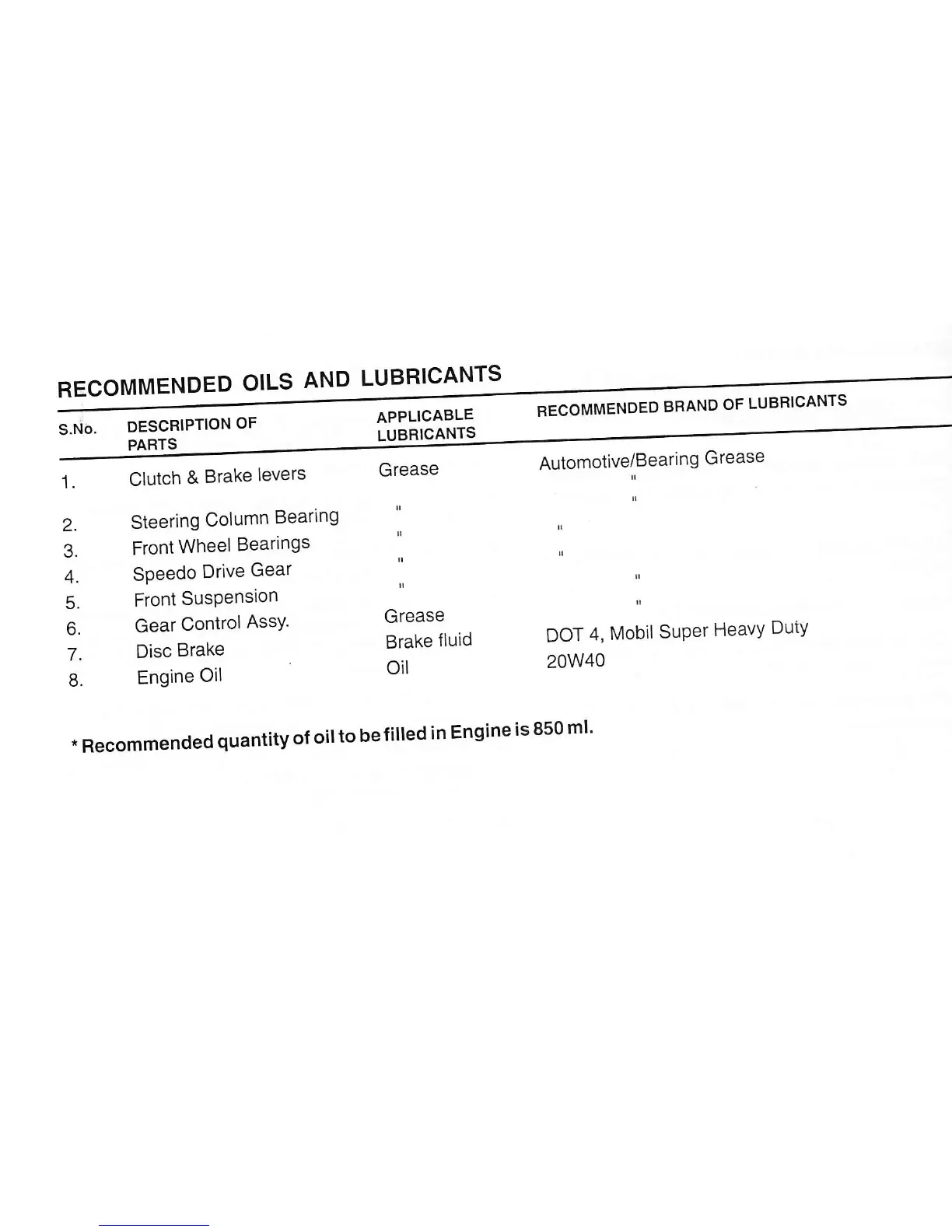 GENUINE Stella - Recommended Oils and Lubricants; Lubricant Recommendations List
