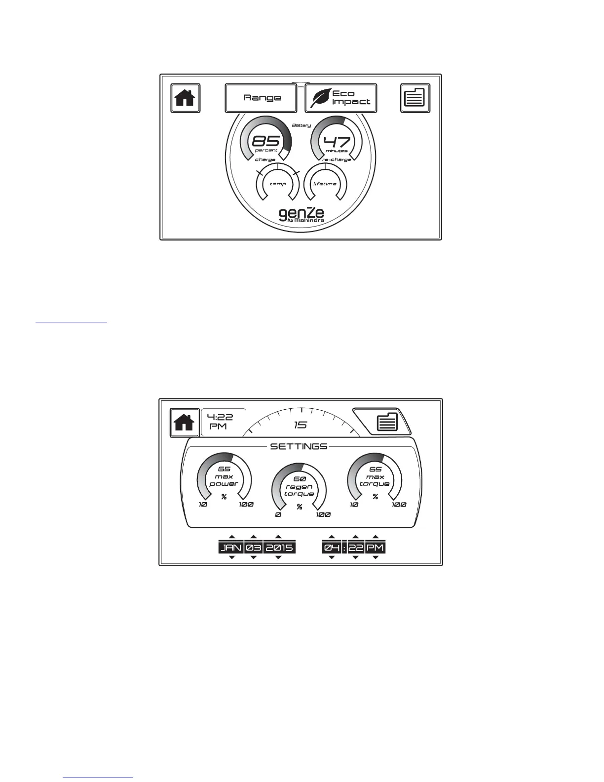 this screen to the Home, Menu, Range, or Eco Impact screens using the buttons on the top of the screen.