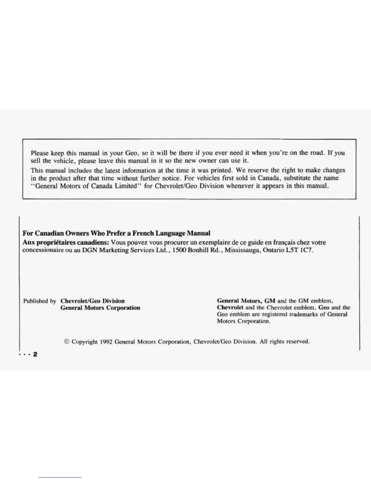 Published by Chevrolet/Geo Division