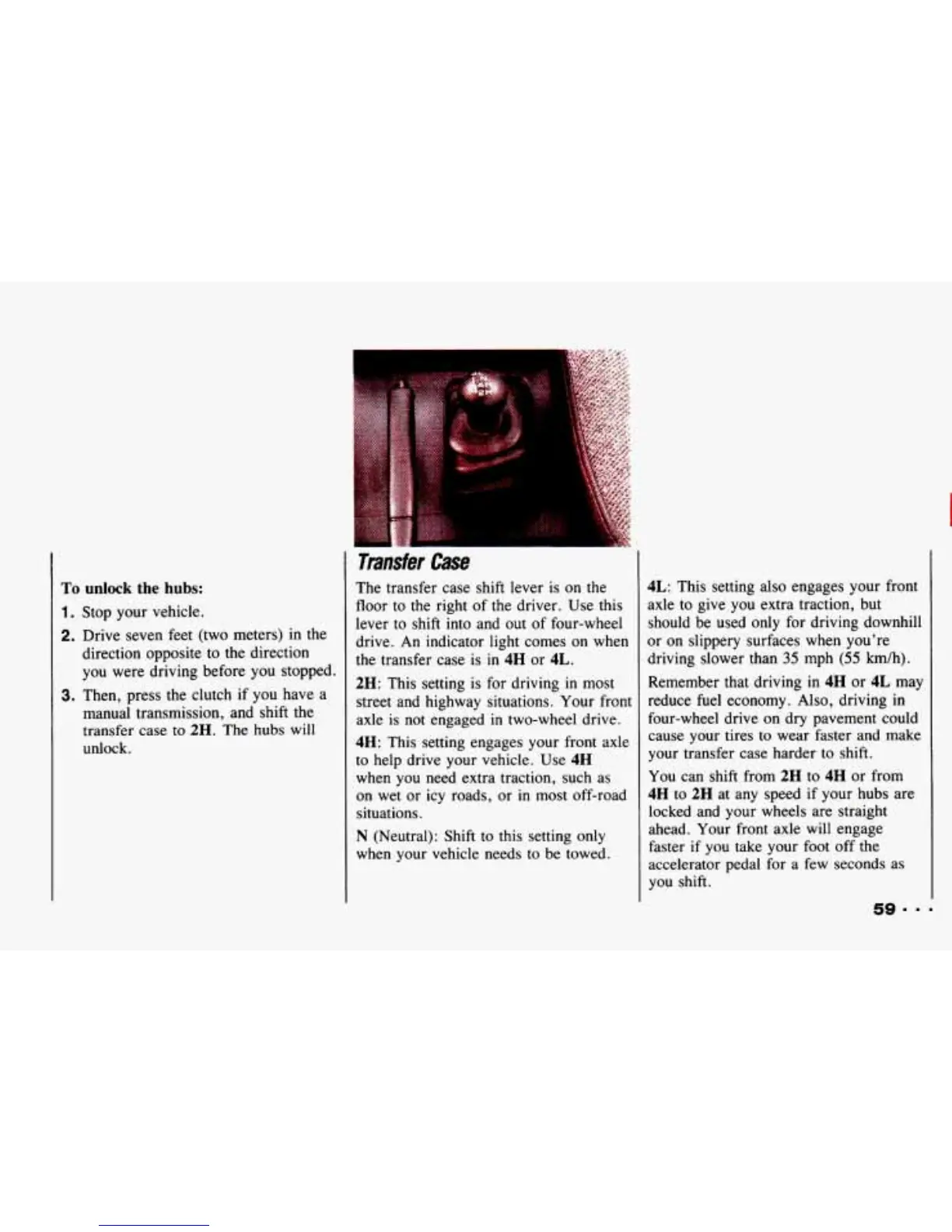 lever to shift into and out of four-wheel