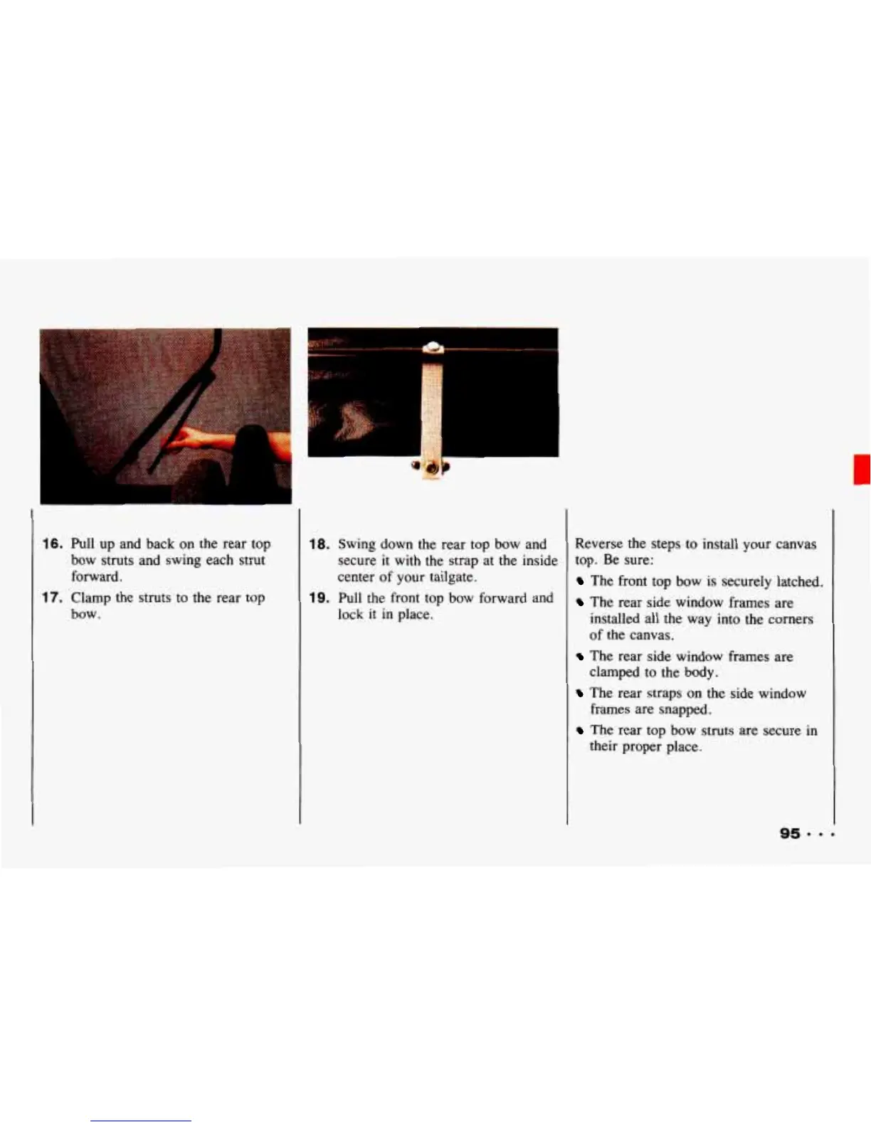 The rear top bow struts are secure in