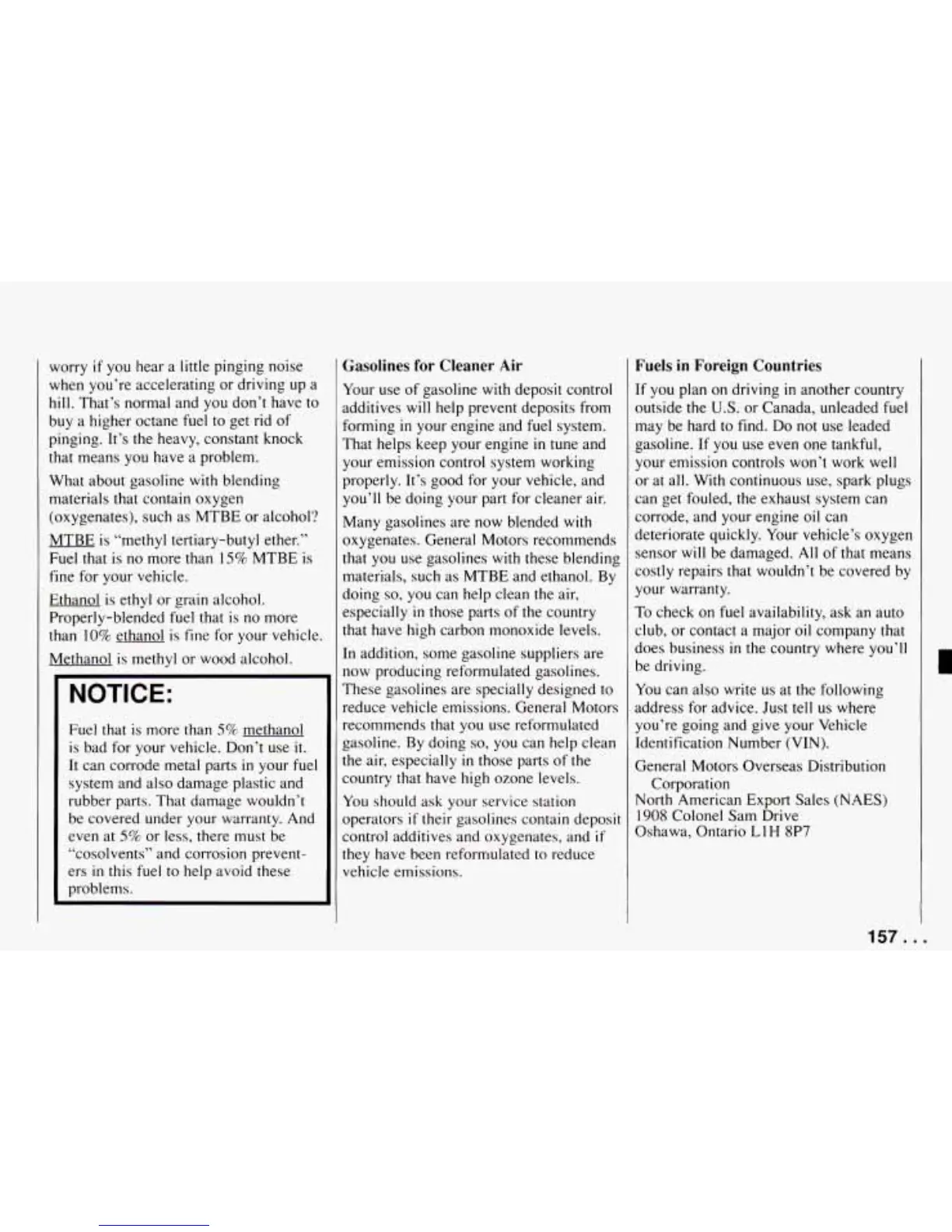 oxygenates. General Motors recommends