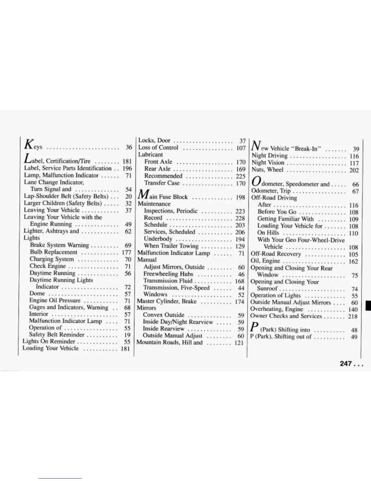 Outside Manual Adjust Mirrors .... 60