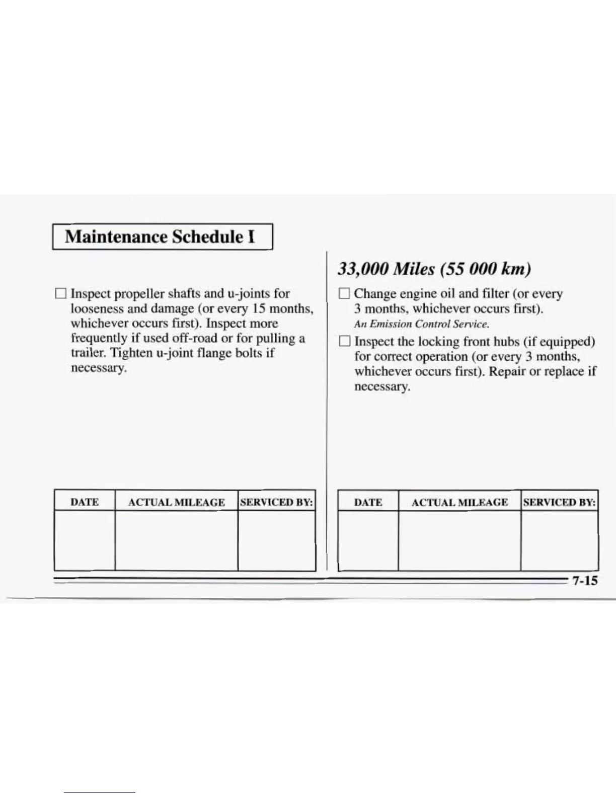 DATE ACTUAL MILEAGE SERVICED BY: