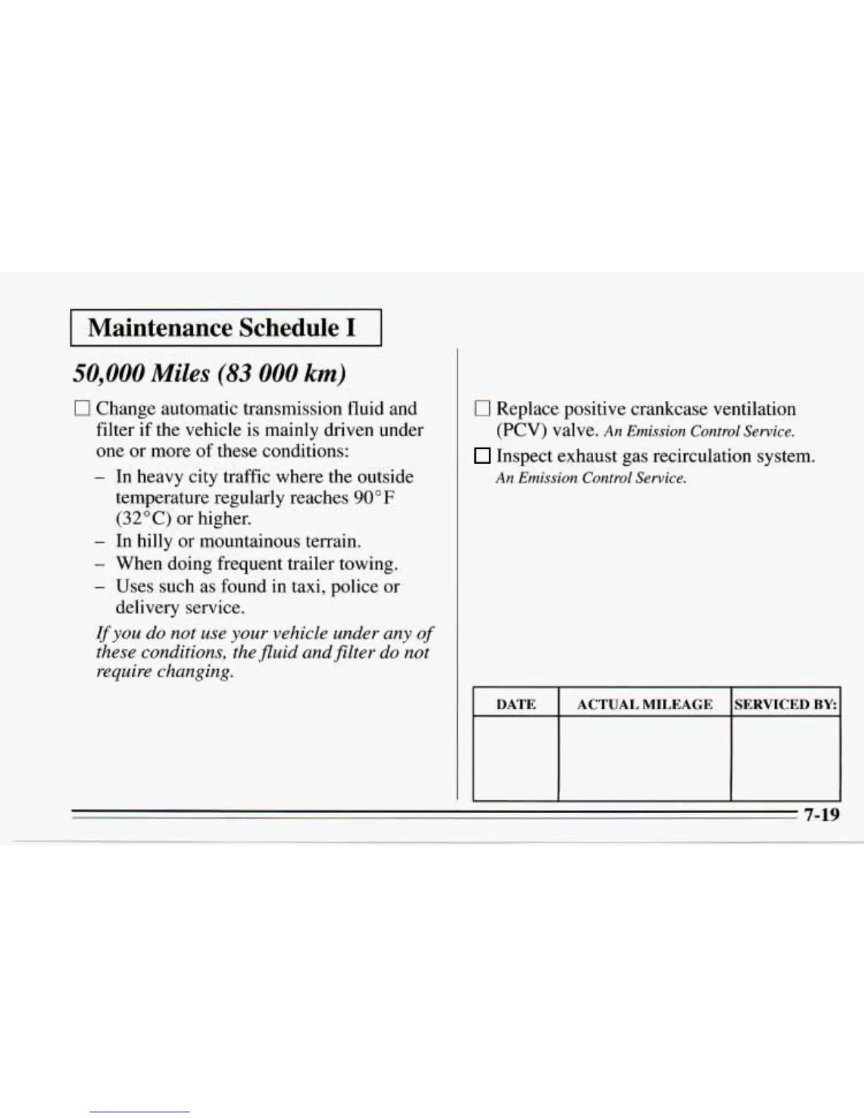 ACTUAL MILEAGE lSERVICED