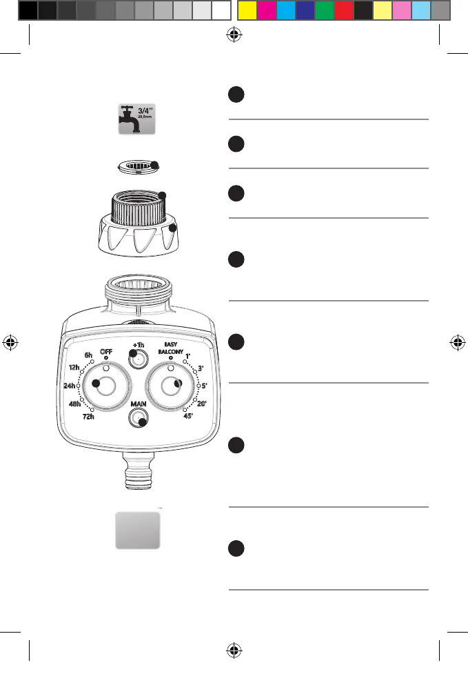(6, 12, 24, 48 ou 72 heures). Pour modier la durée de l’arrosage, tourner la poignée