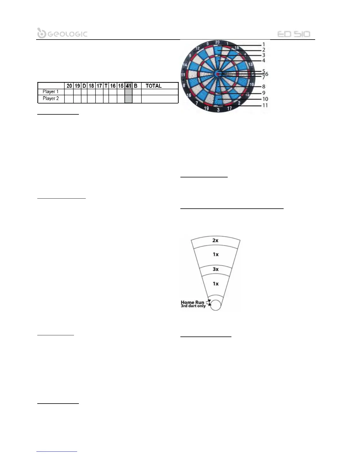 composto por 9 "innings". Cada jogador lança 3 dardos por