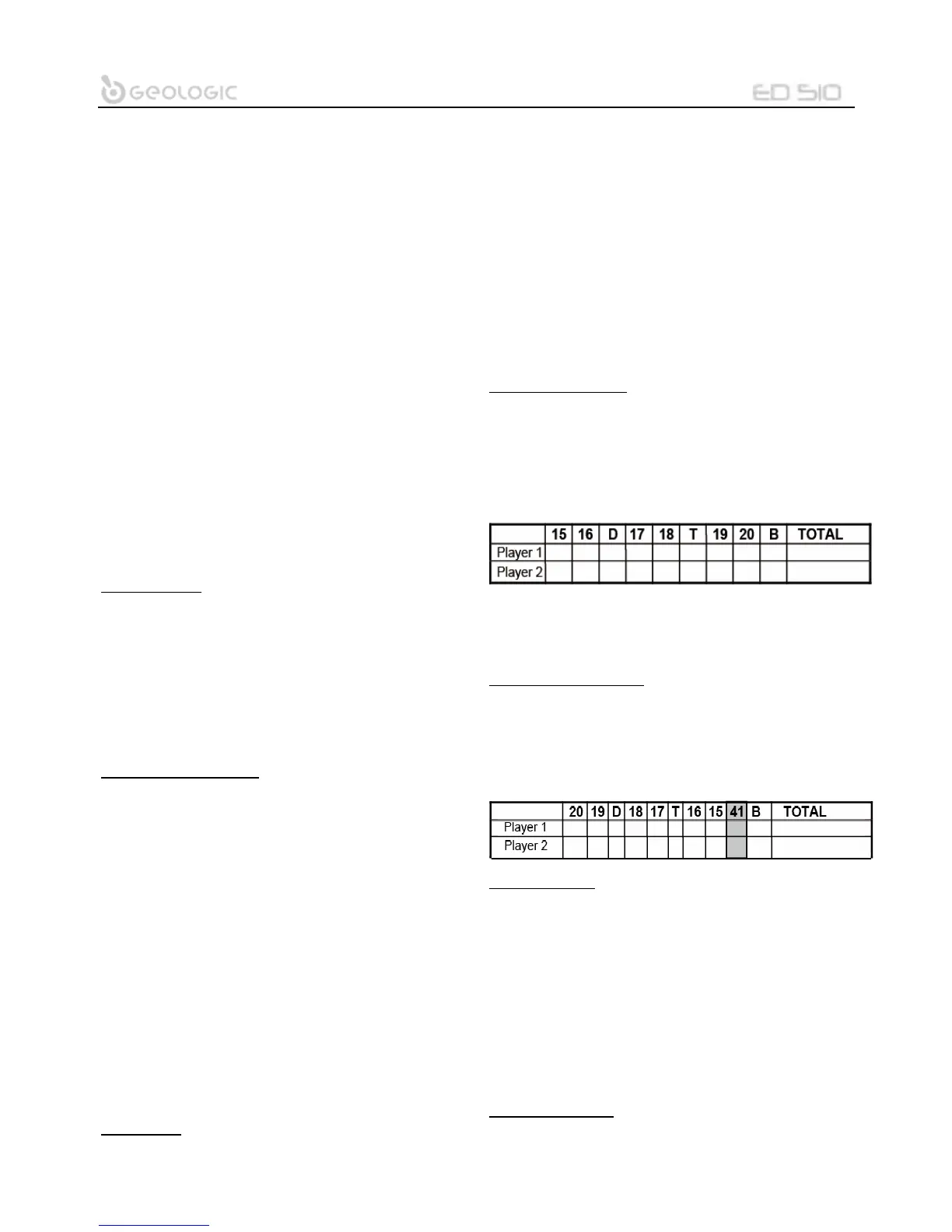 Varje spelare försöker ta poäng i varje nummer från 1 till 20 och i