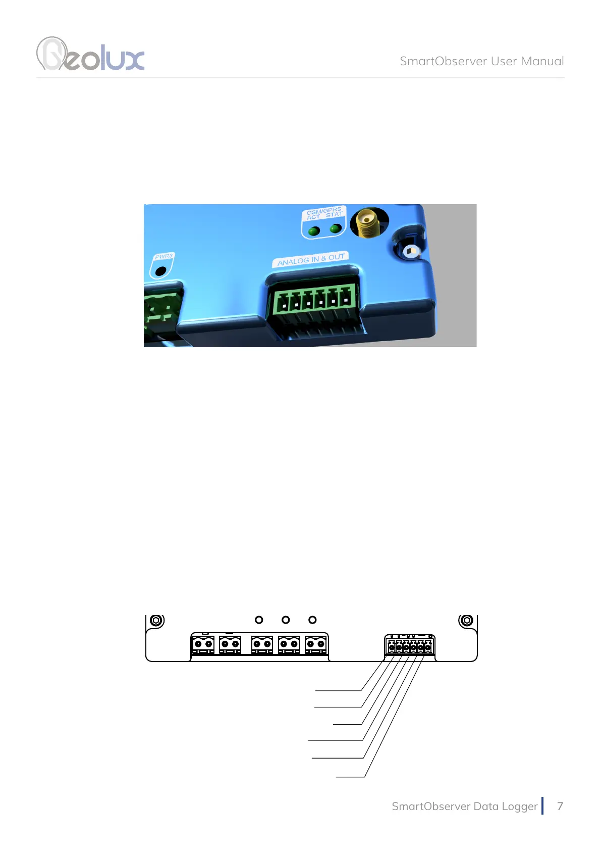 logger, as shown in Picture 7. From left to right, there are two analog voltage inputs, one 4-20 mA