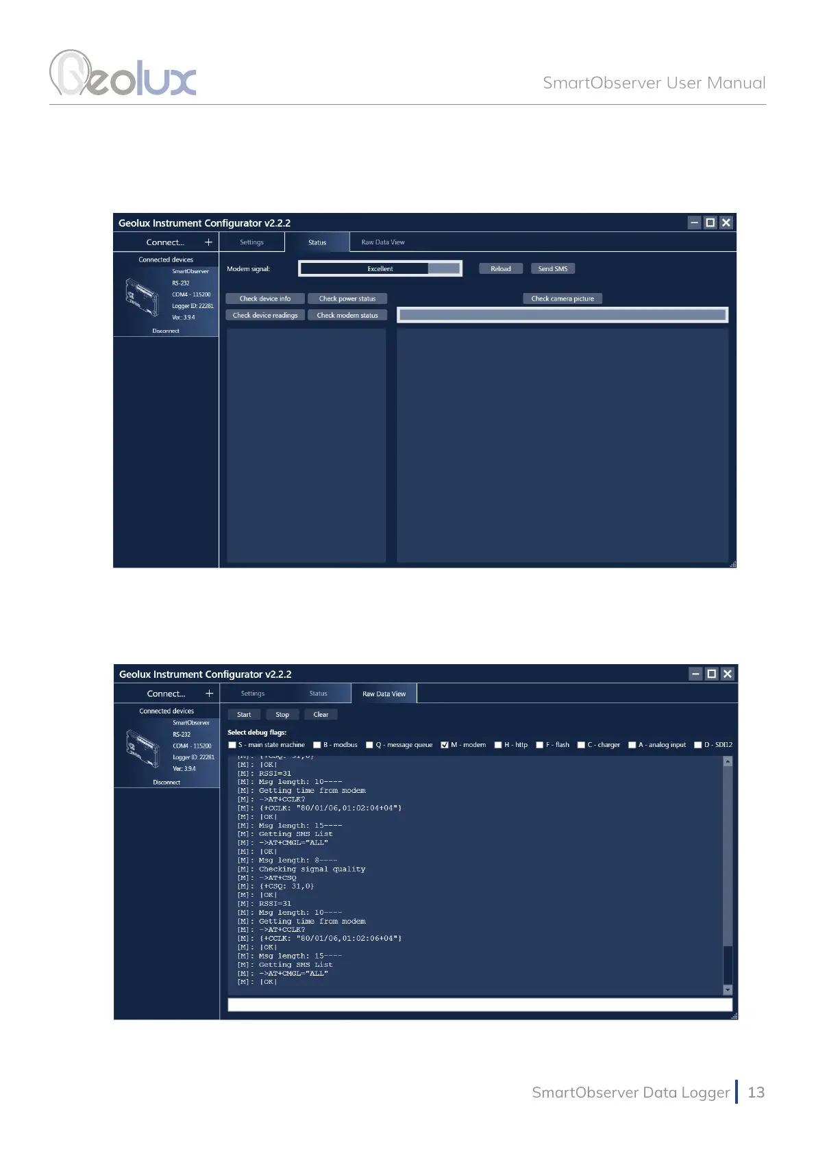 messages sent by the SmartObserver data logger by selecting any debug ags of interest and