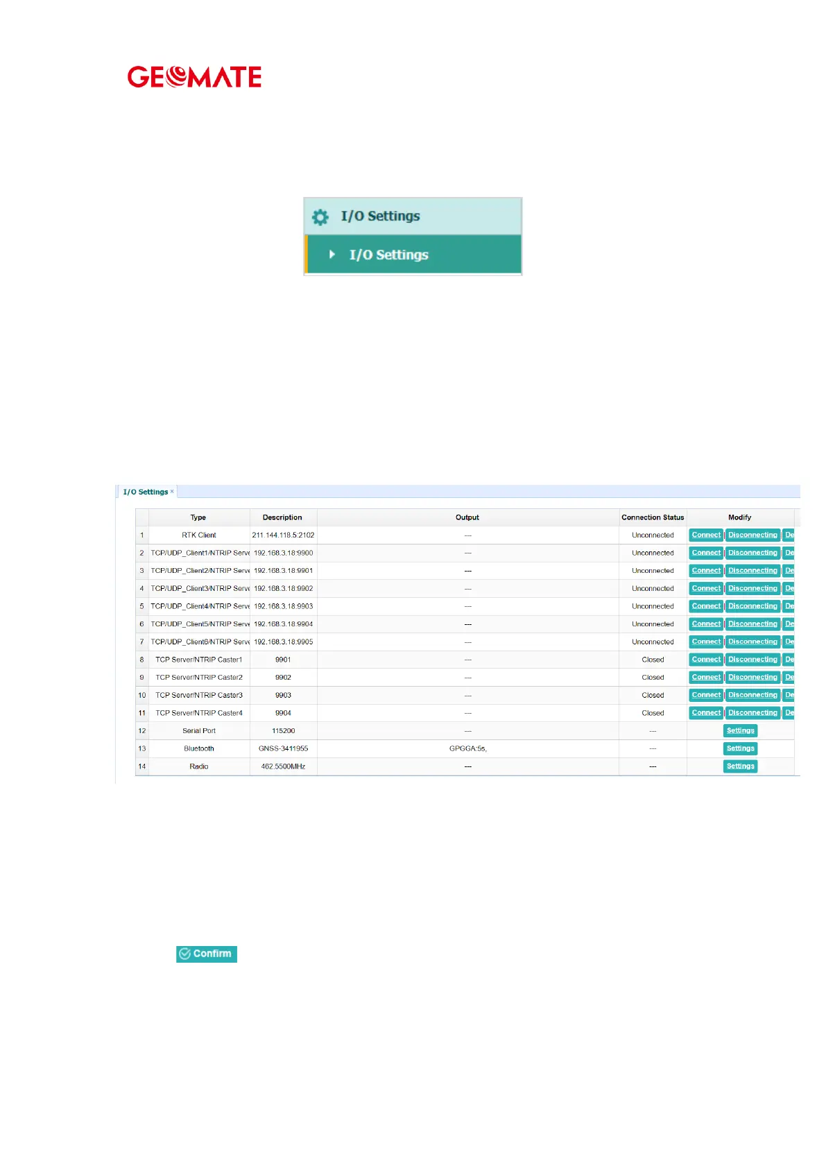 After configuring the settings of RTK client, users can log on CORS or APIS. Tap the Connect