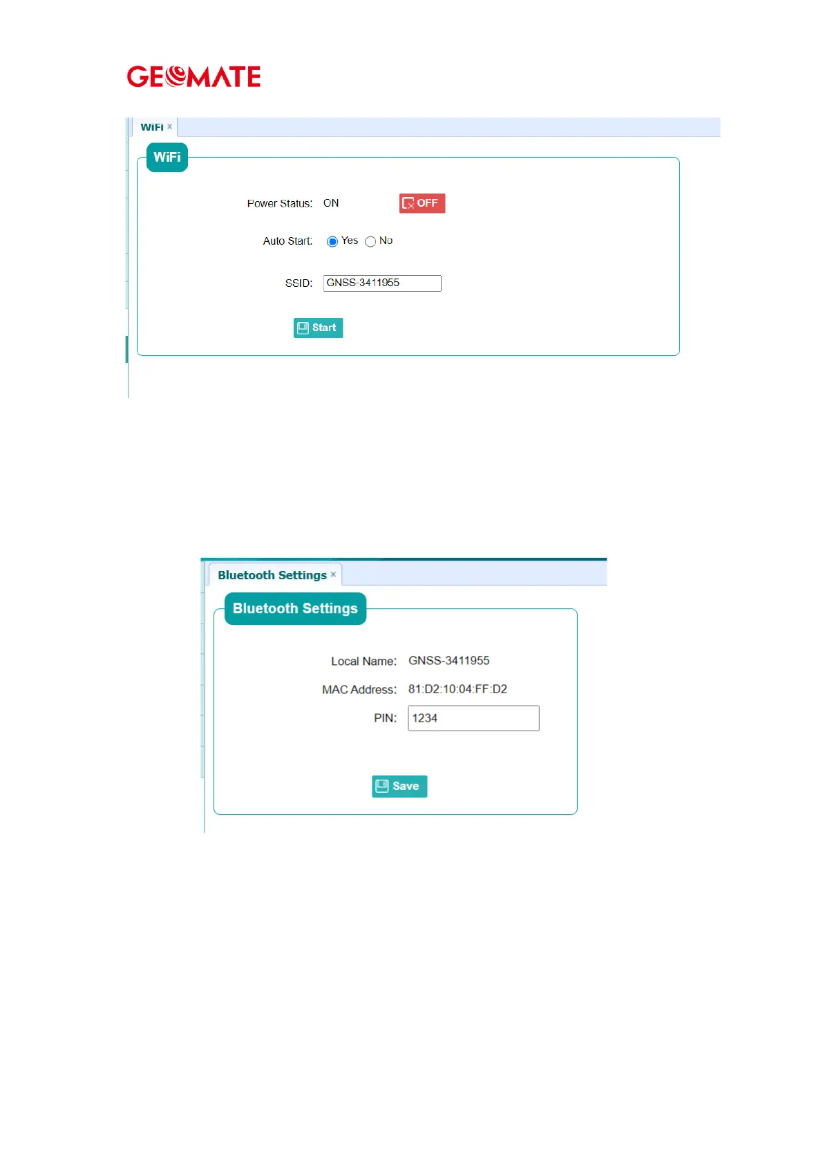 GEOMATE SG7 - Bluetooth Settings Submenu