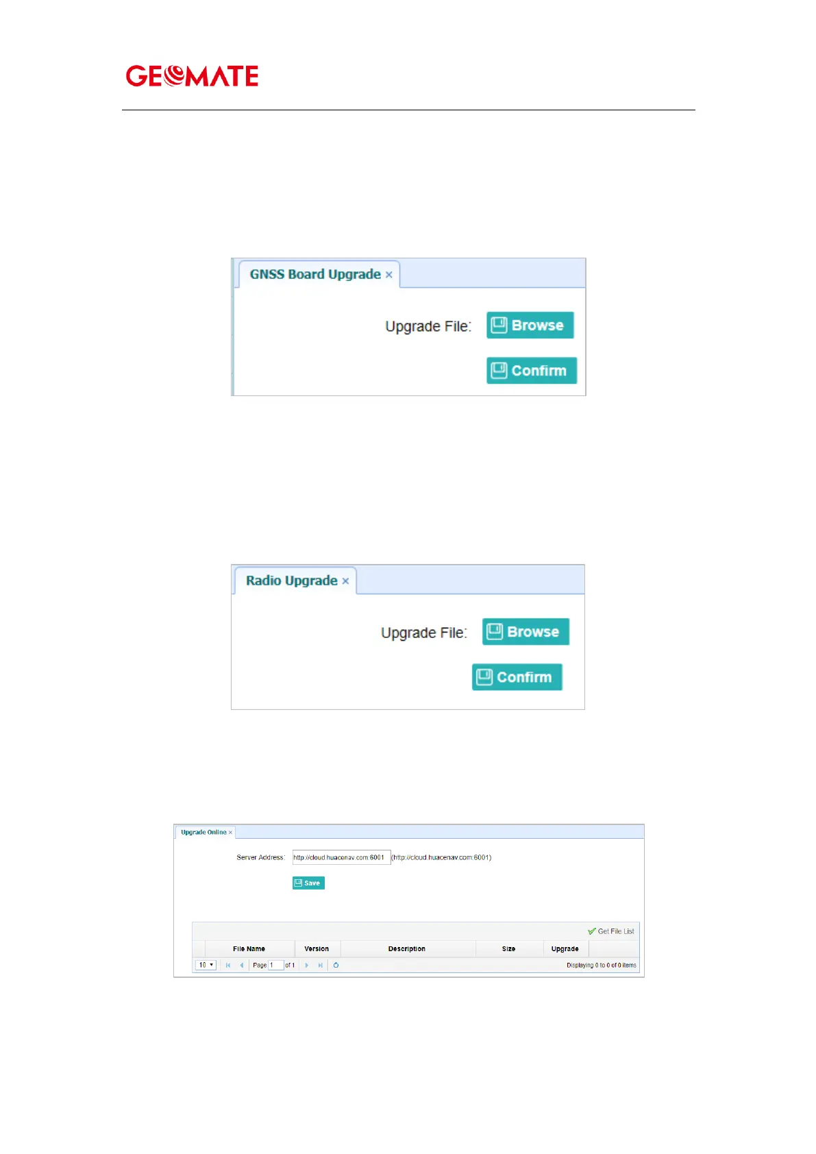 Use this submenu to upgrade GNSS Board. Use this submenu to load new board to the receiver