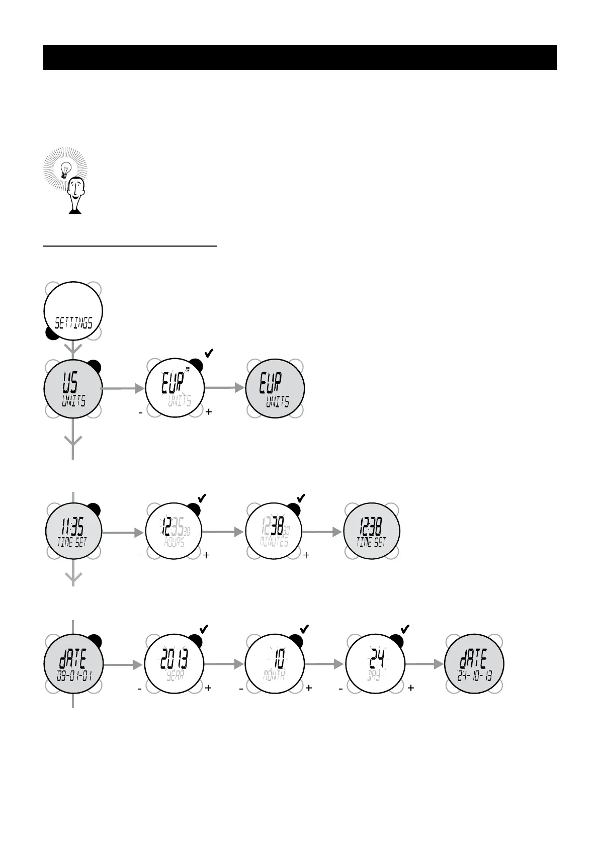 - If no button is pressed for several seconds during settings, the watch automatically exits settings