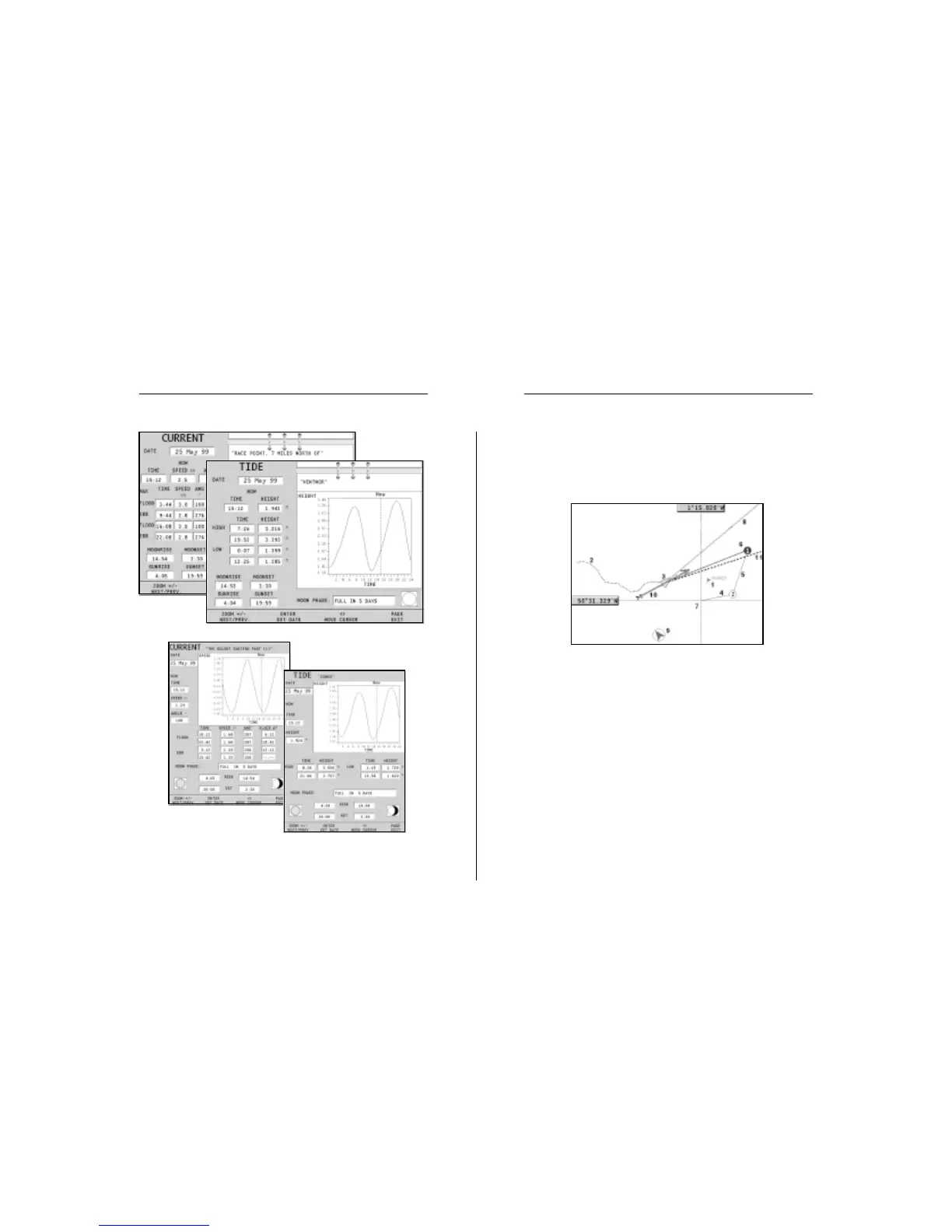 or the boat’s position to the manual cursor when no waypoint