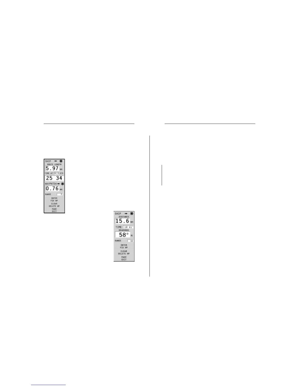 ROUTE INFO menu; see the Route Section)