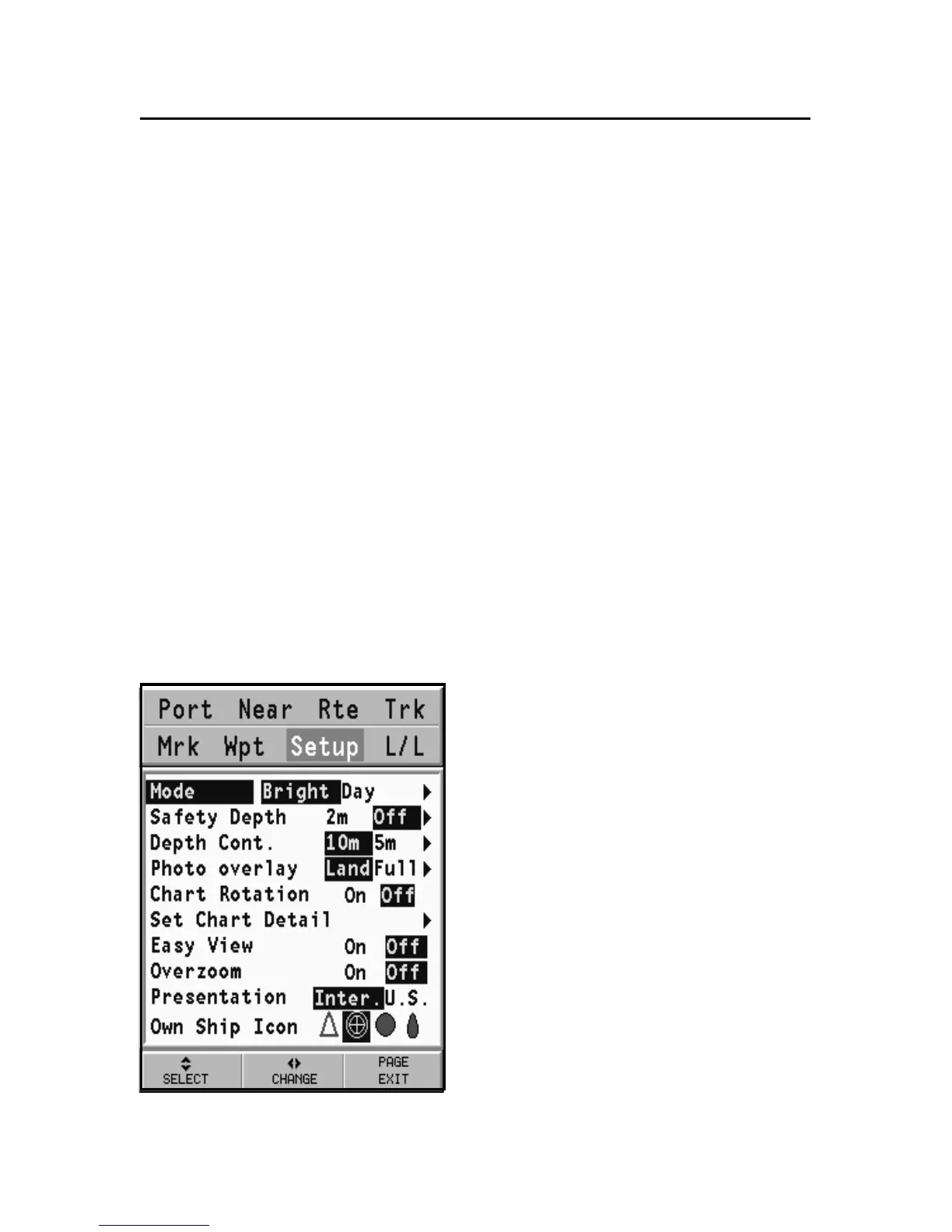 menu, select SETUP, SET CHART DETAIL and then, by the