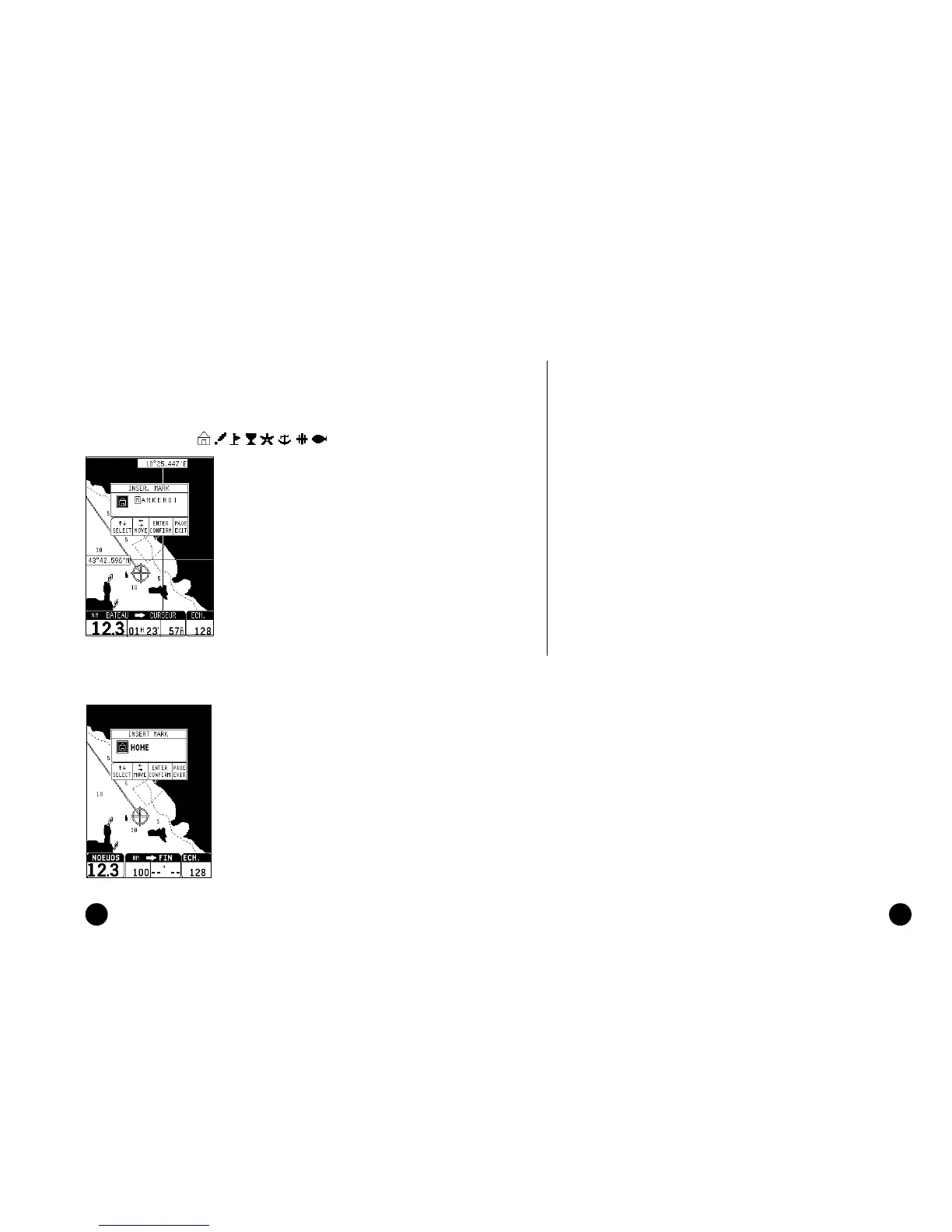 le signal d’alarme; le message “PROCHE DU WAYPOINT” apparaît auto-