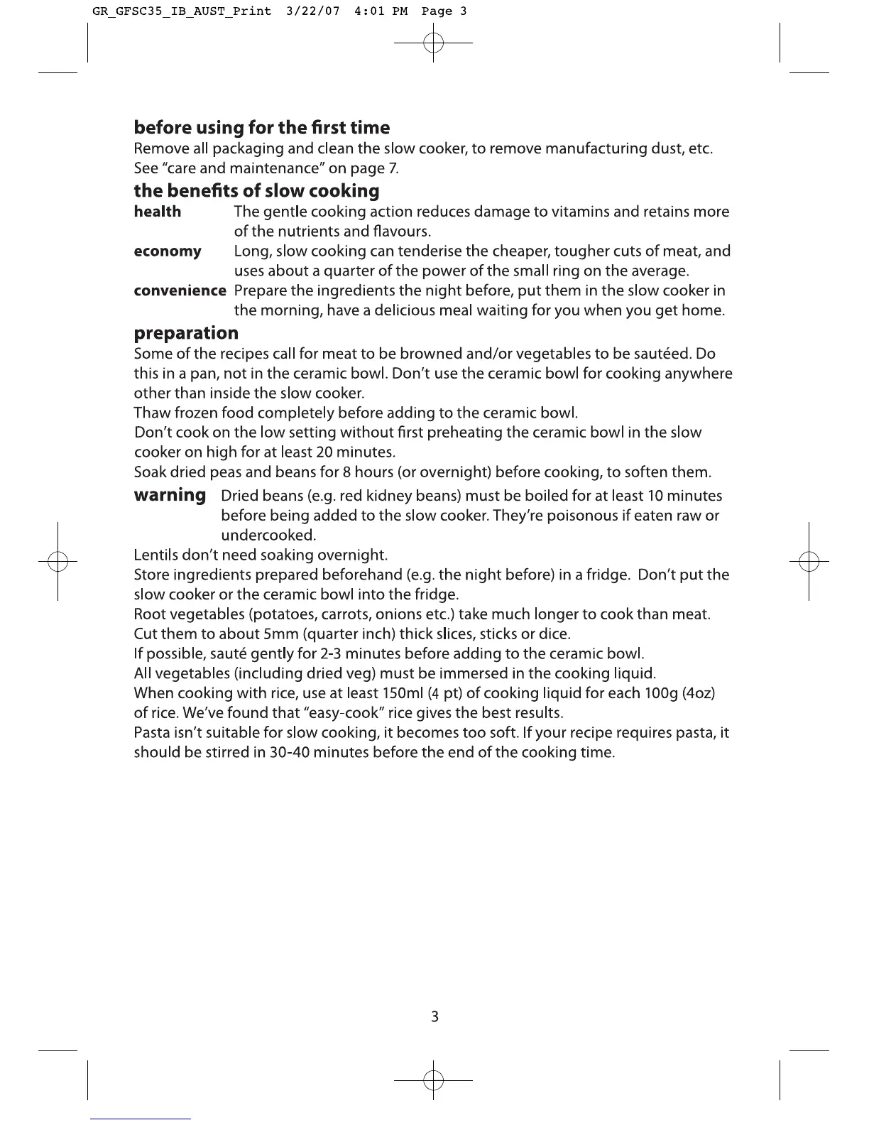 George Foreman GFSC35 - Getting Started with Your Slow Cooker; First-Time Use and Benefits; Preparation and Cooking Tips