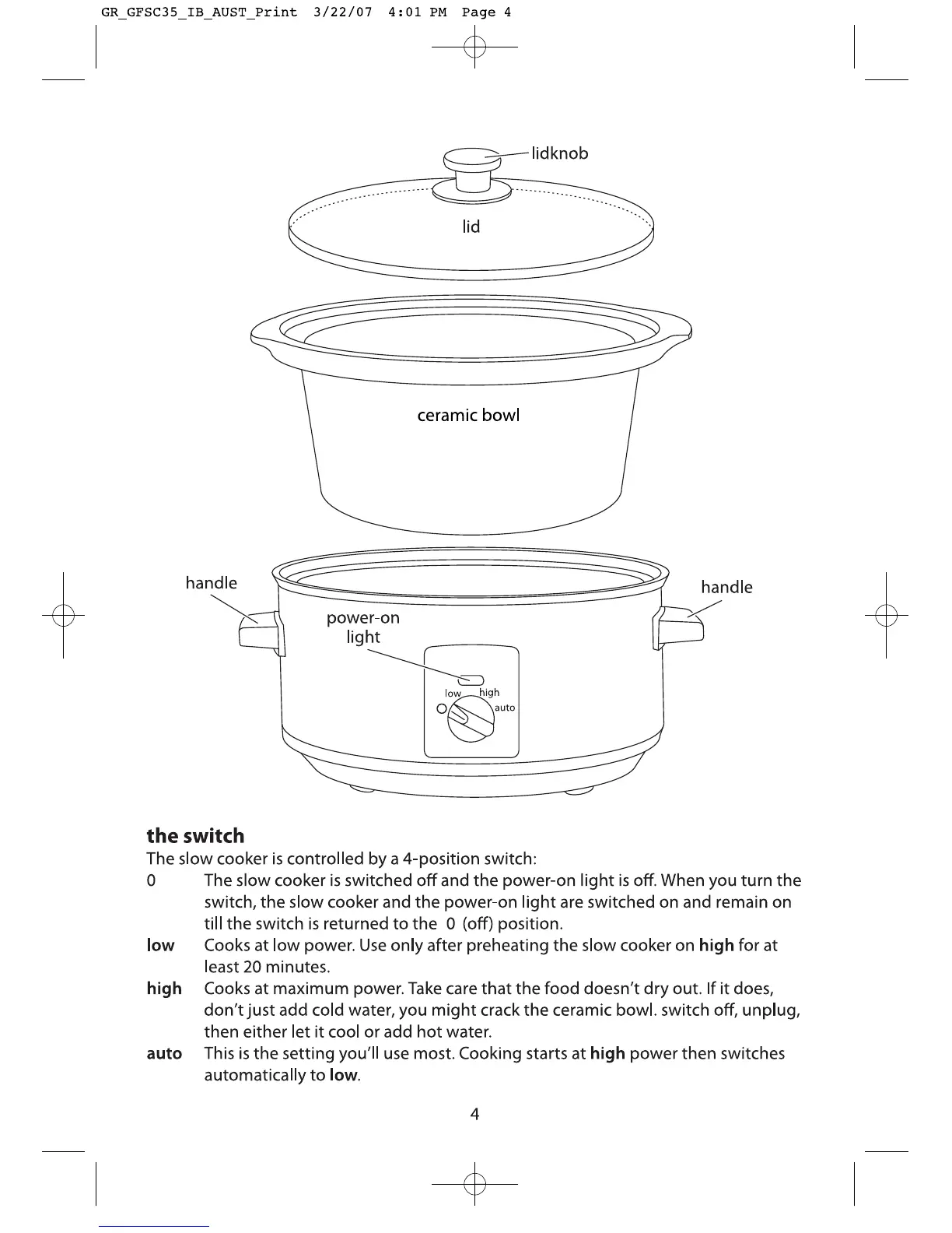 George Foreman GFSC35 - Slow Cooker Controls and Operation; Understanding the Switch Settings