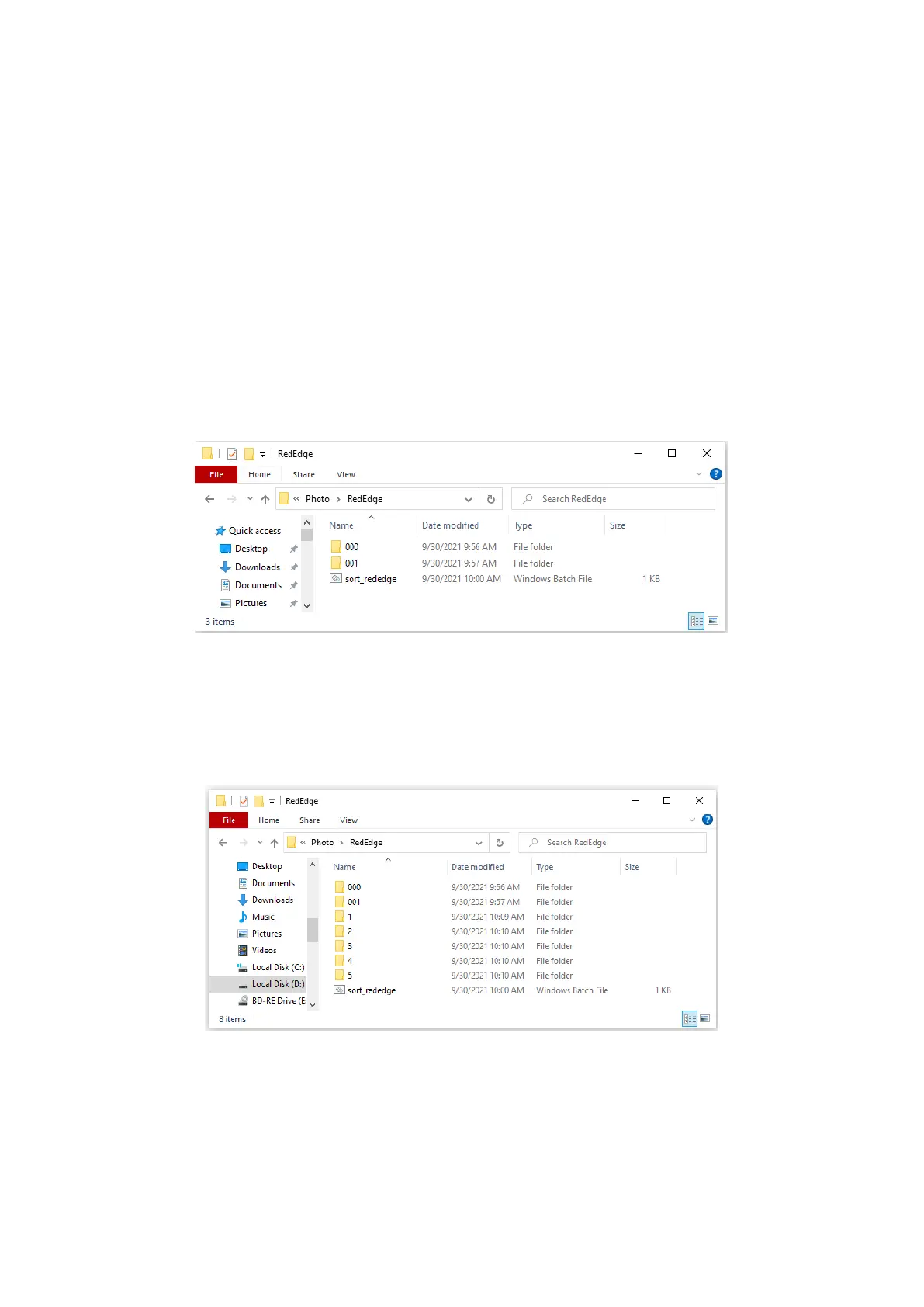 3. Copy sort_rededge.bat script in RedEdge folder. This script will sort pictures in 5