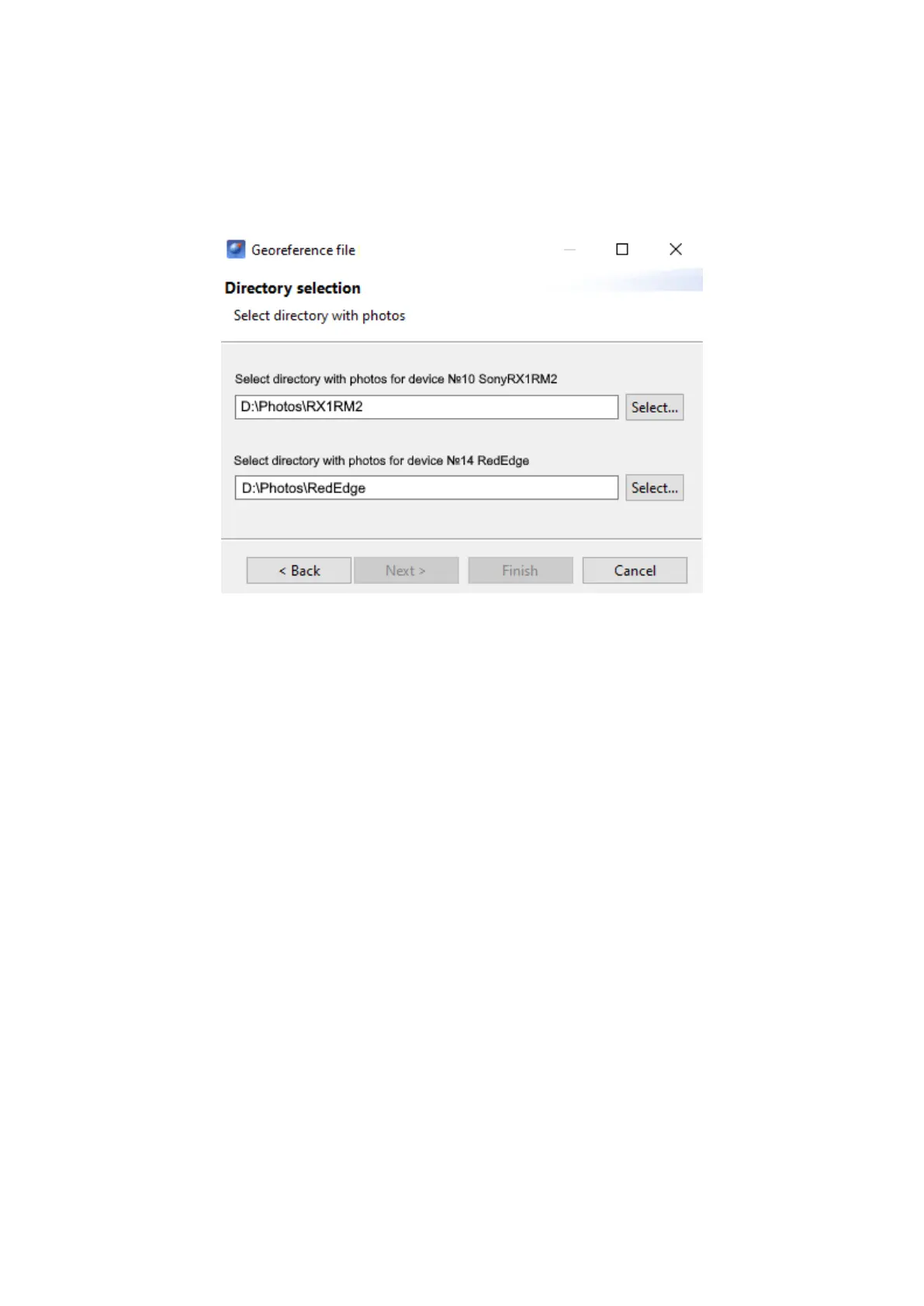 GNSS metadata will be downloaded from UAV memory automatically. Set paths to