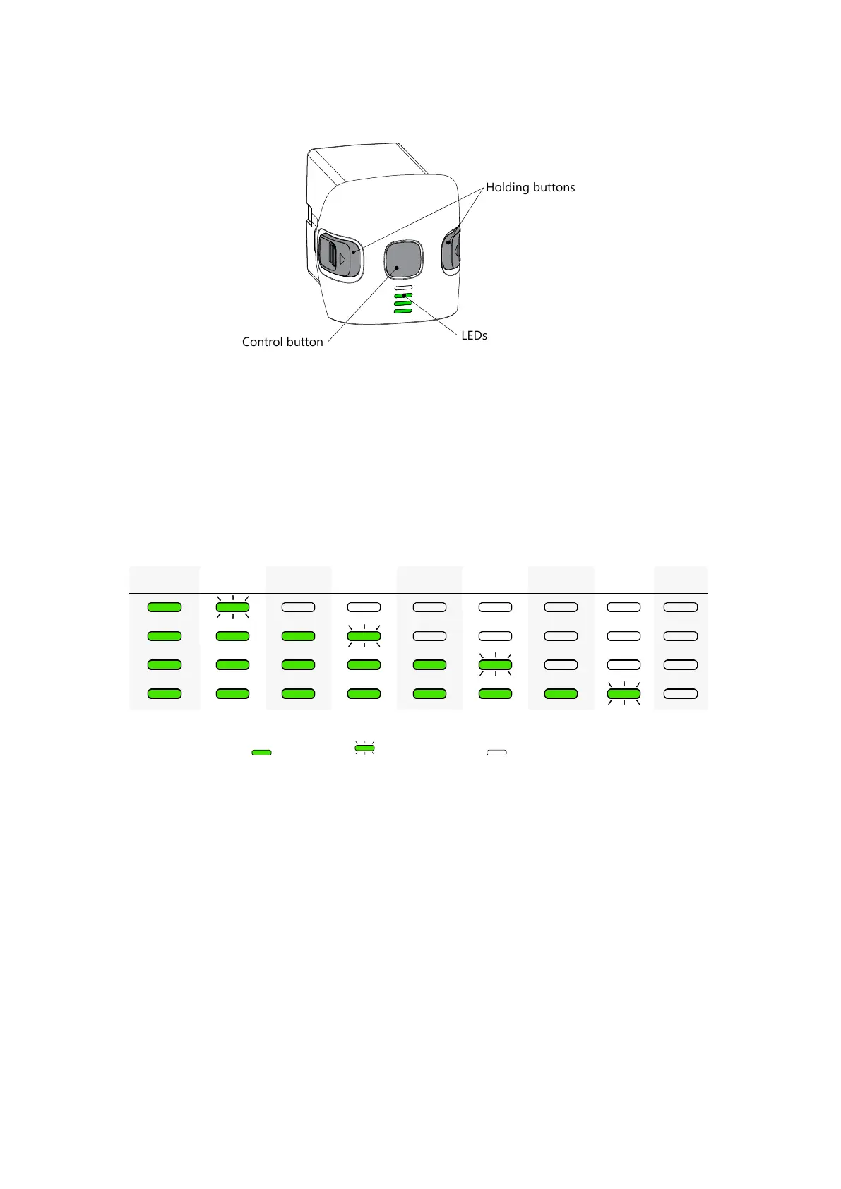 — LED is on; — LED is flashing; — LED is off.