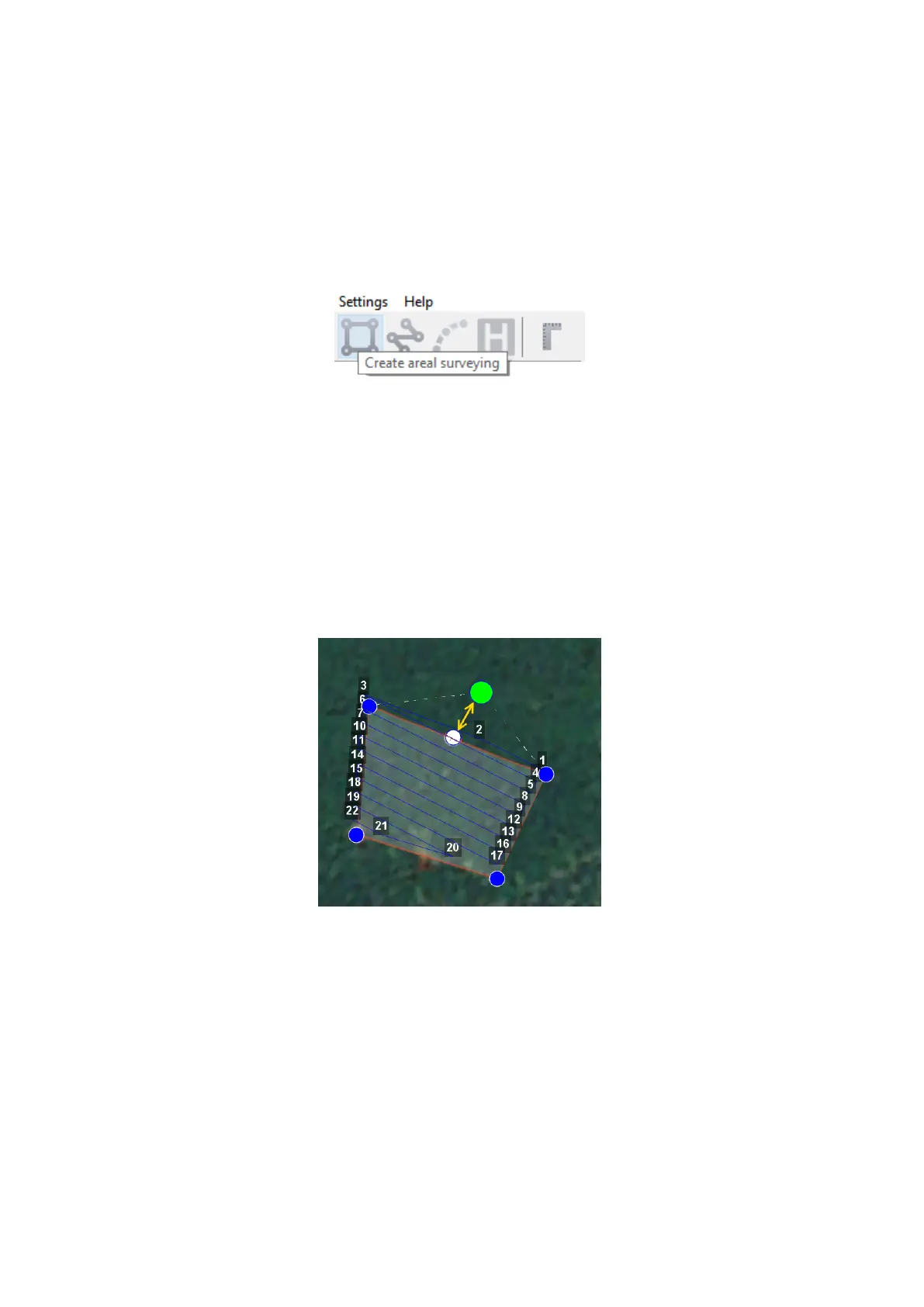 Aerial surveying is a polygon surveying. User sets vertices of the polygon (more than