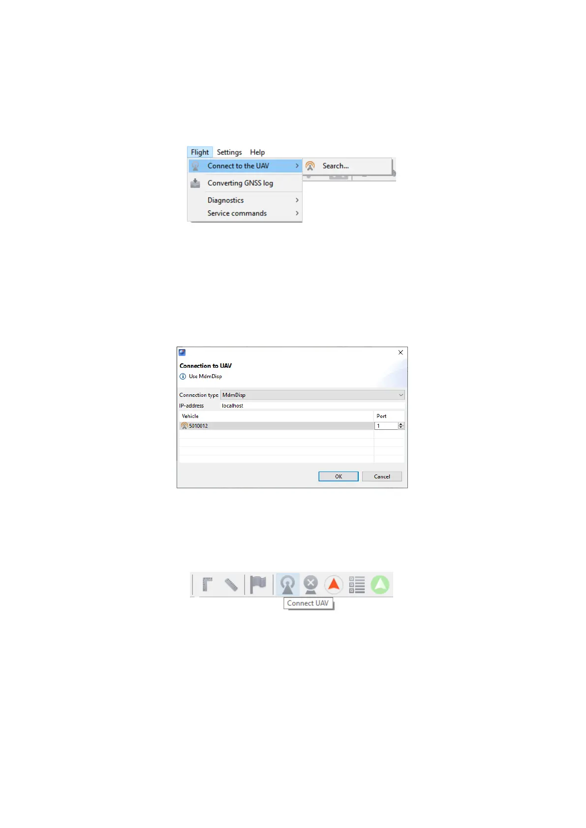 and use Connect UAV button on the toolbar.
