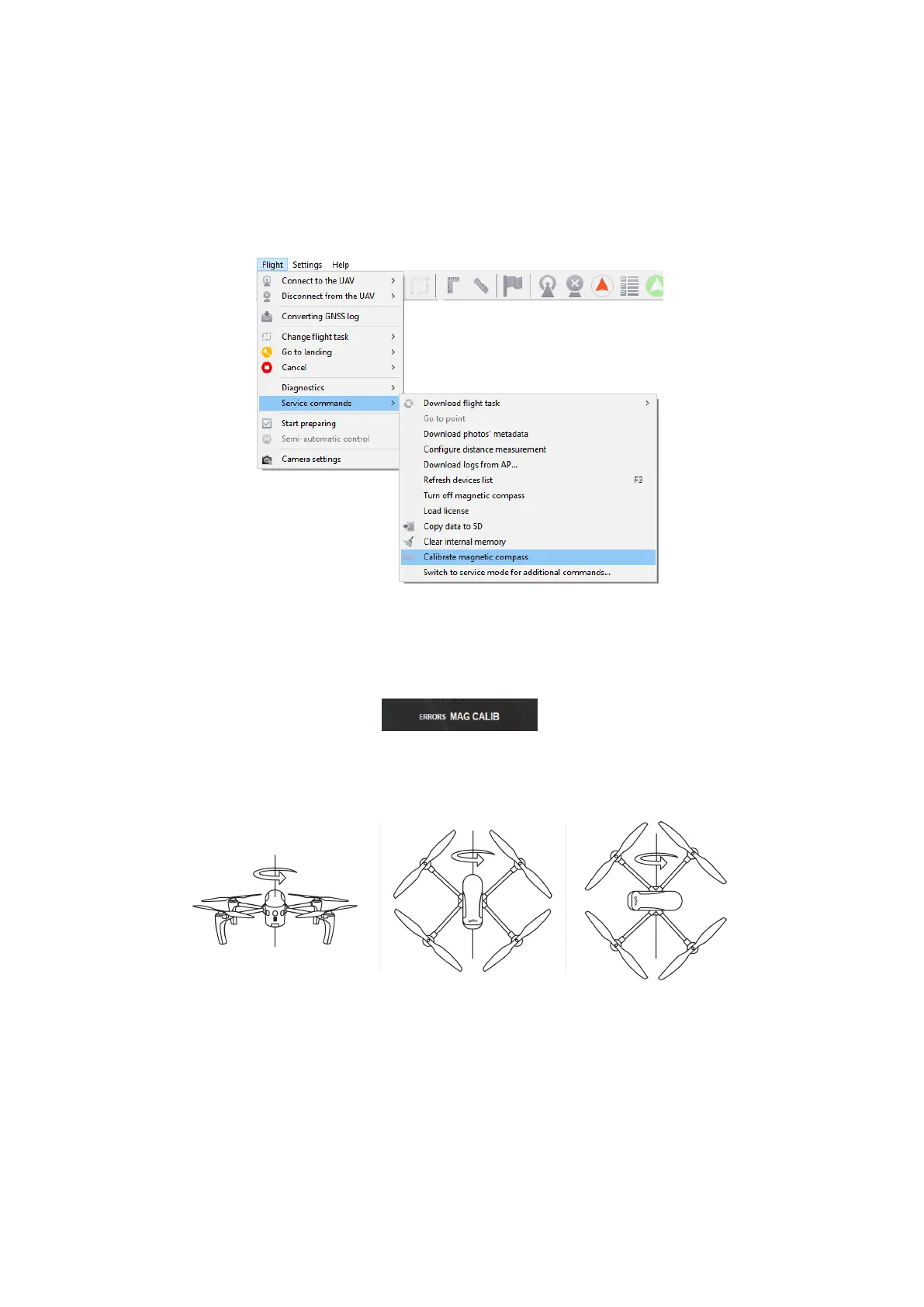 Rotate UAV in 360° on three-axises to calibrate the magnetic compass.