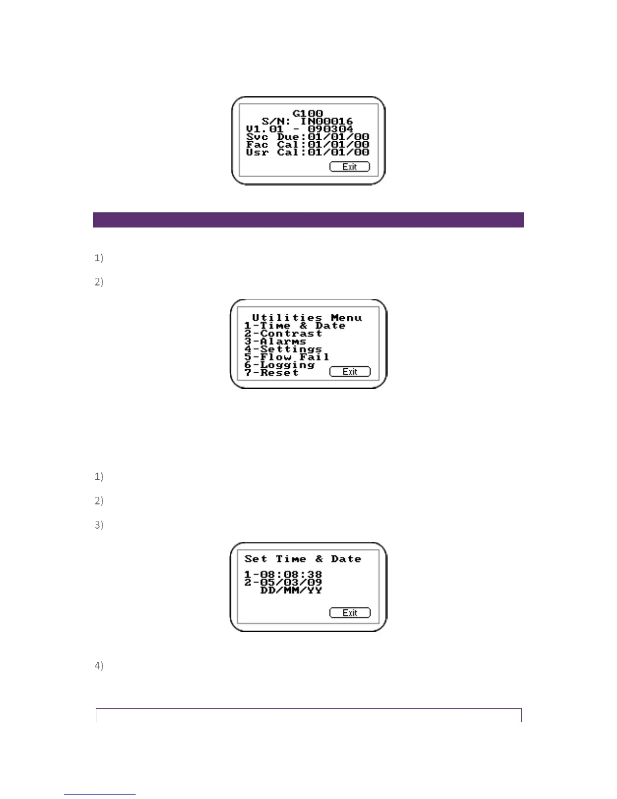 The ‘Time and Date’ option enables the operator to check or set the instrument’s internal clock. The