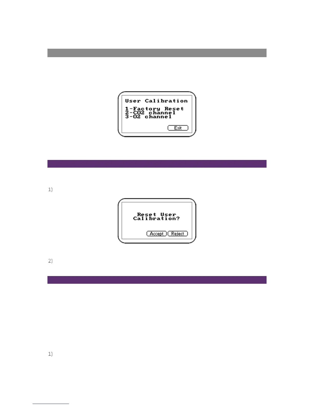 To prevent the user calibration data being accidentally erased the user must confirm the action