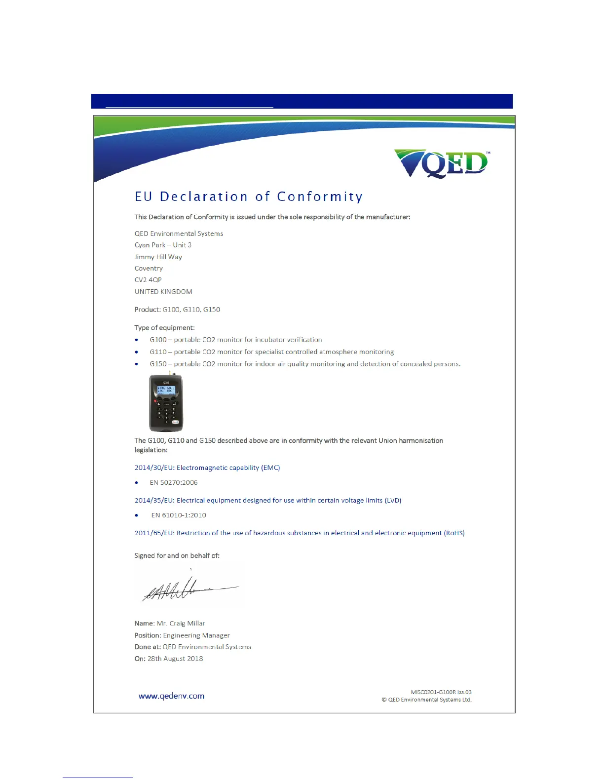 Geotech G100 - EU DECLARATION OF CONFORMITY