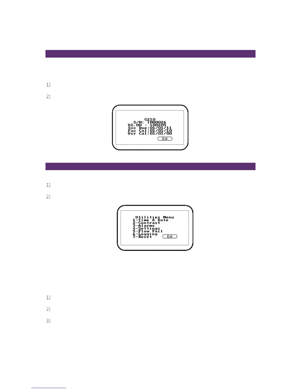 Press ‘Key 2’ to display the ‘Utilities’ menu and the following screen is displayed: