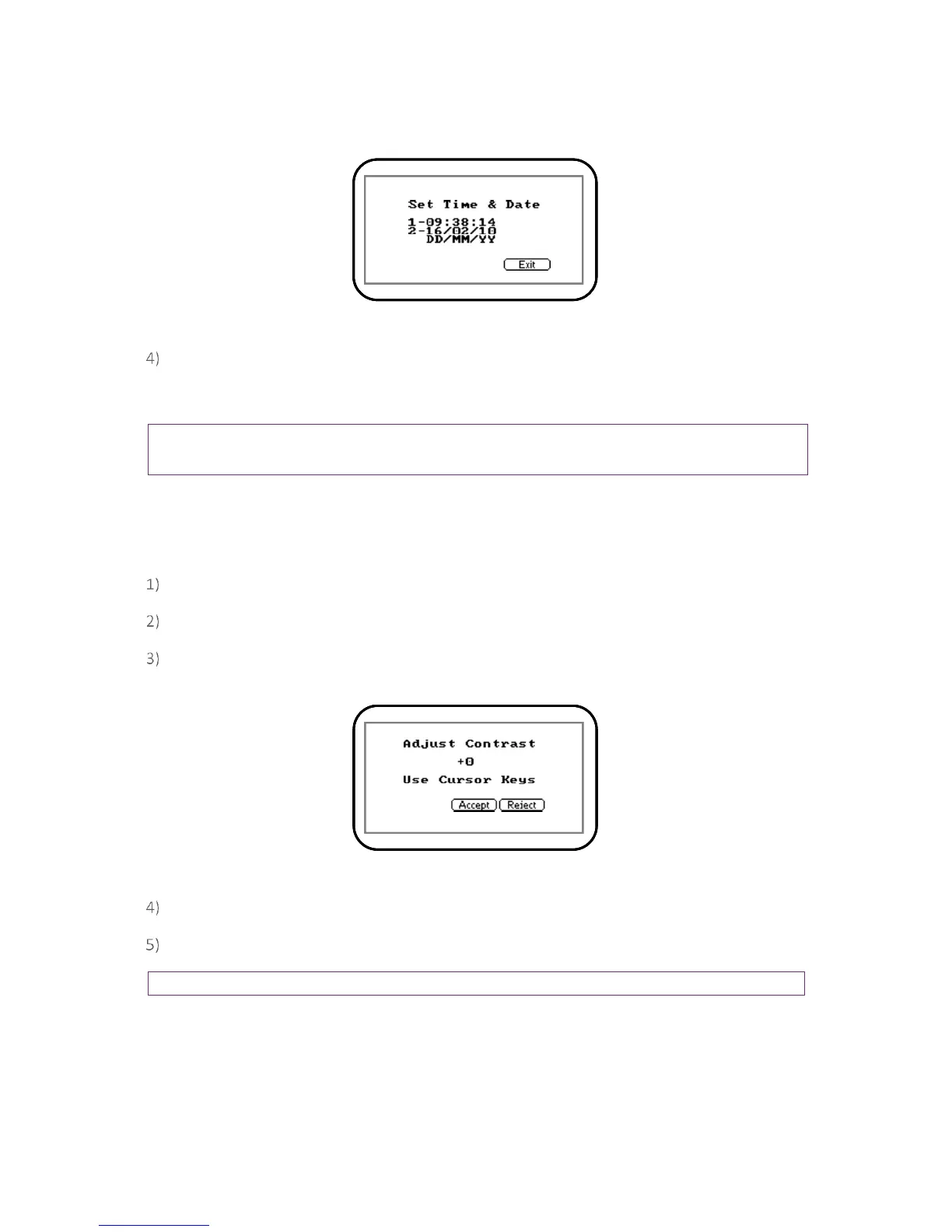 The ‘Contrast’ option enables the operator to adjust the instrument screen contrast to compensate