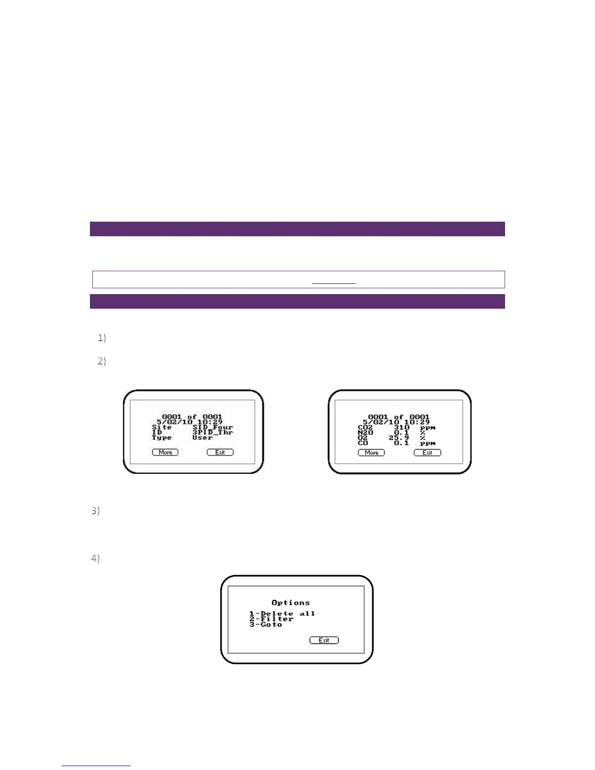 Press ‘Key 4 - View Data’ to view the stored data readings and the following screens are