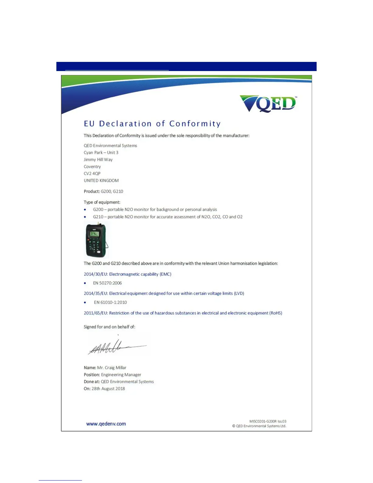Geotech G200 - EU Declaration of Conformity