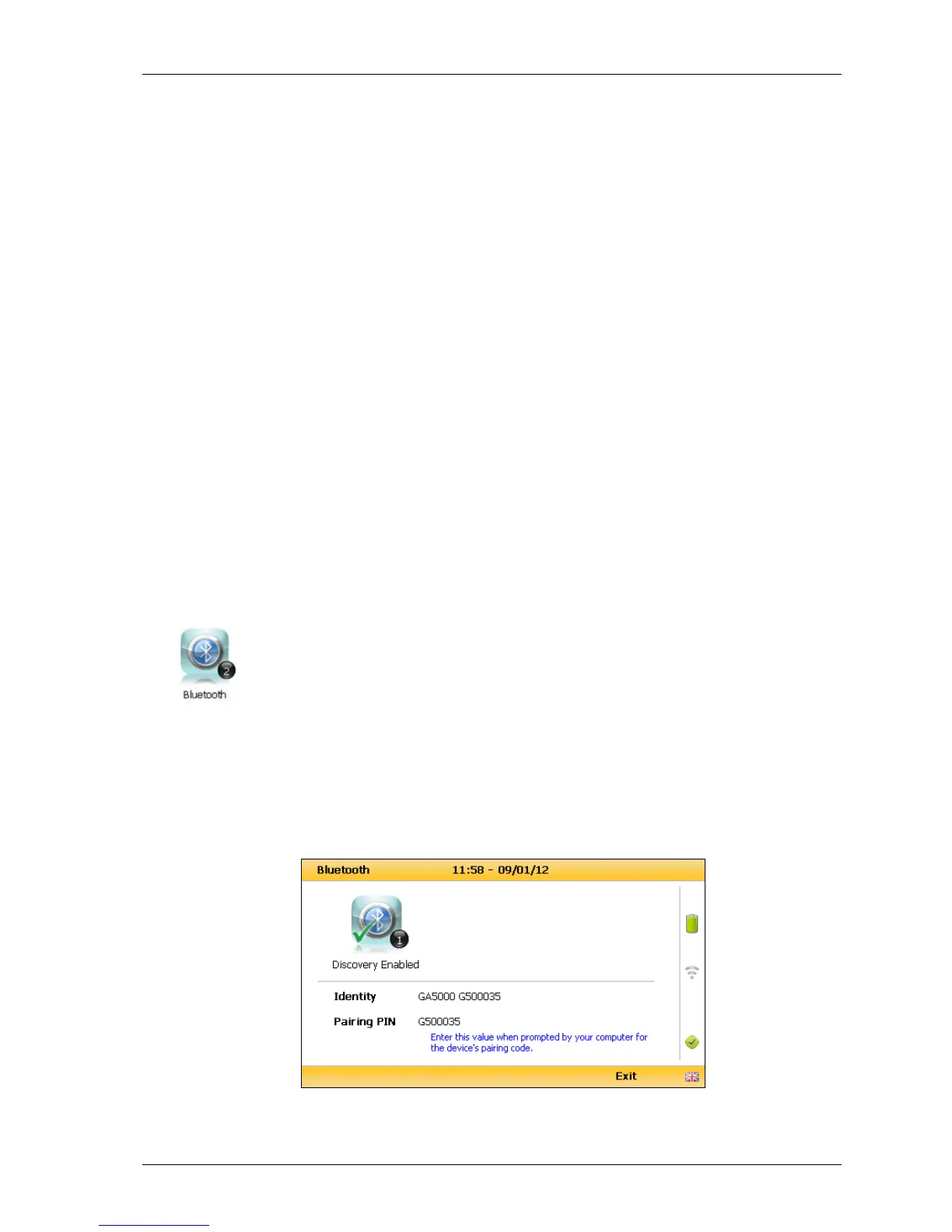 2) Select ‘Key 2 – Bluetooth’ and the following screen is displayed: