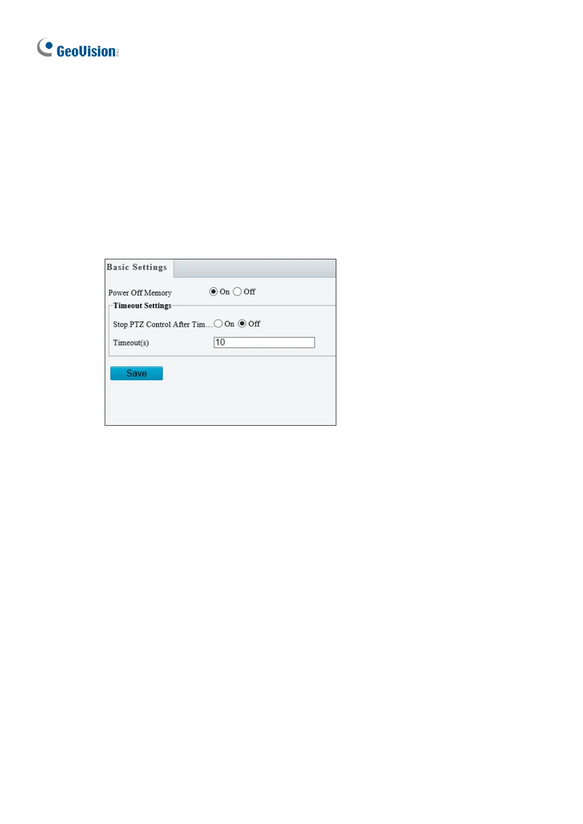 [Timeout Settings] Select On and set the timeout duration. PTZ control is disabled after the