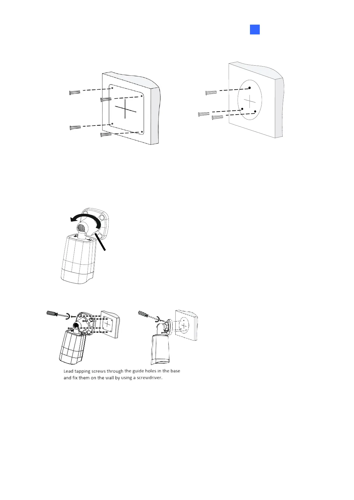 6. Screw the locknut and loosen the universal joint before attaching the camera to the wall.