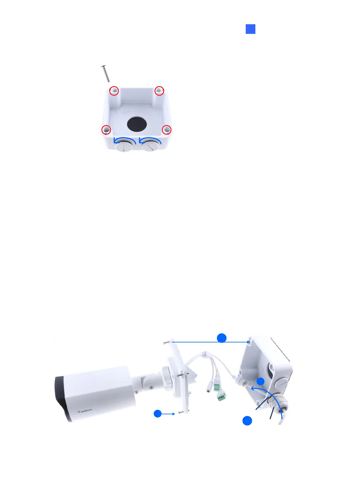 6. Thread the camera cable through the box cover and secure the camera to the cover with