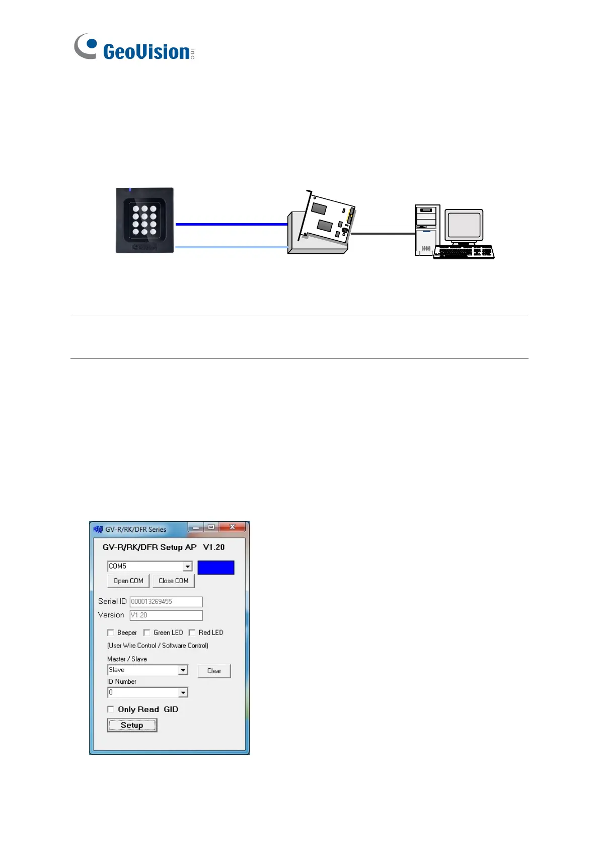 After the reader is connected to the computer of the GV-DVR/NVR, use the GV-R/RK/DFR