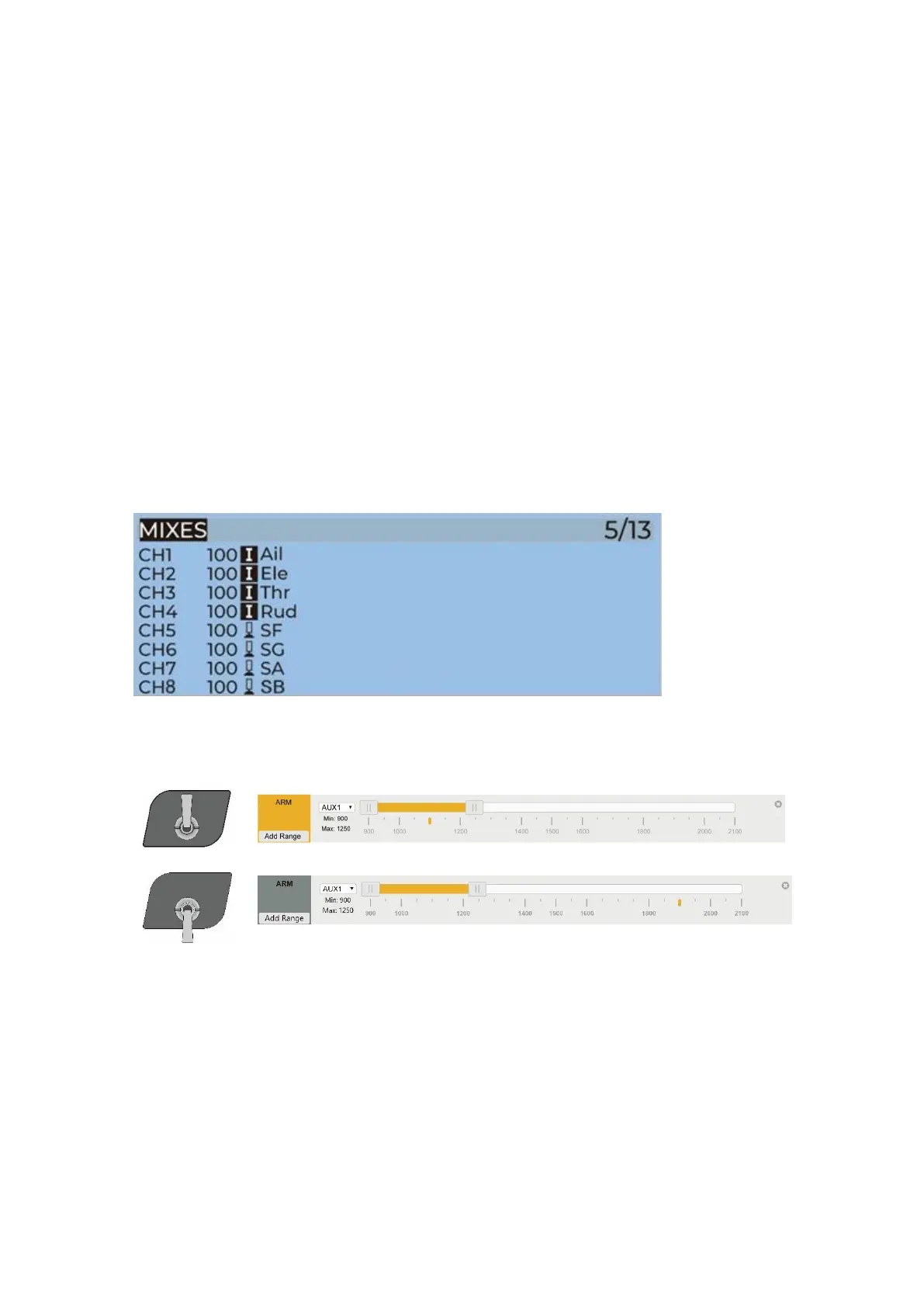 The transmitter of openTX system needs to check the AUX channel. For Taranis X9D/X9D