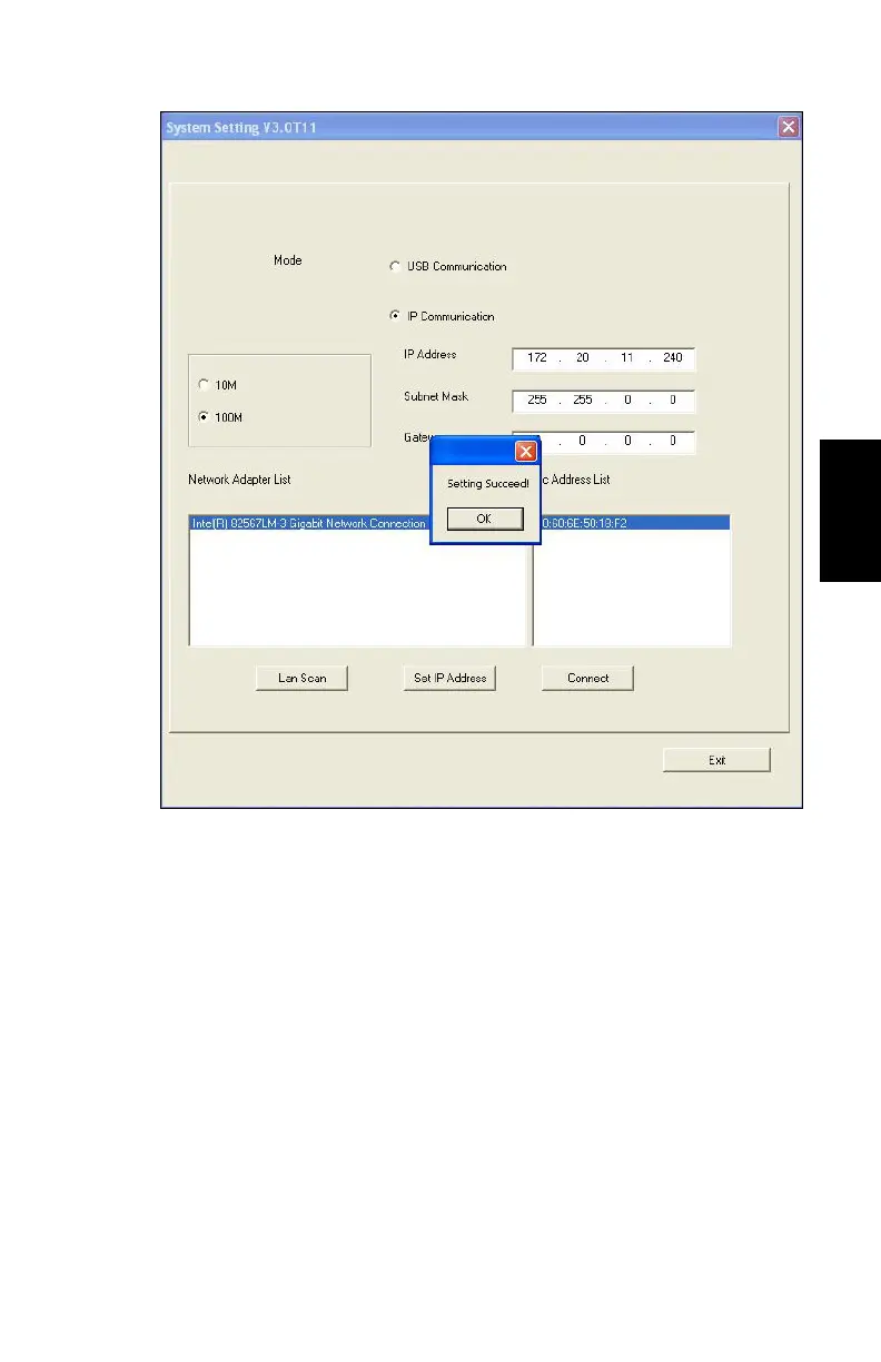 Figura 30. Ventana "System Setting", cuadro "Setting Succeed"